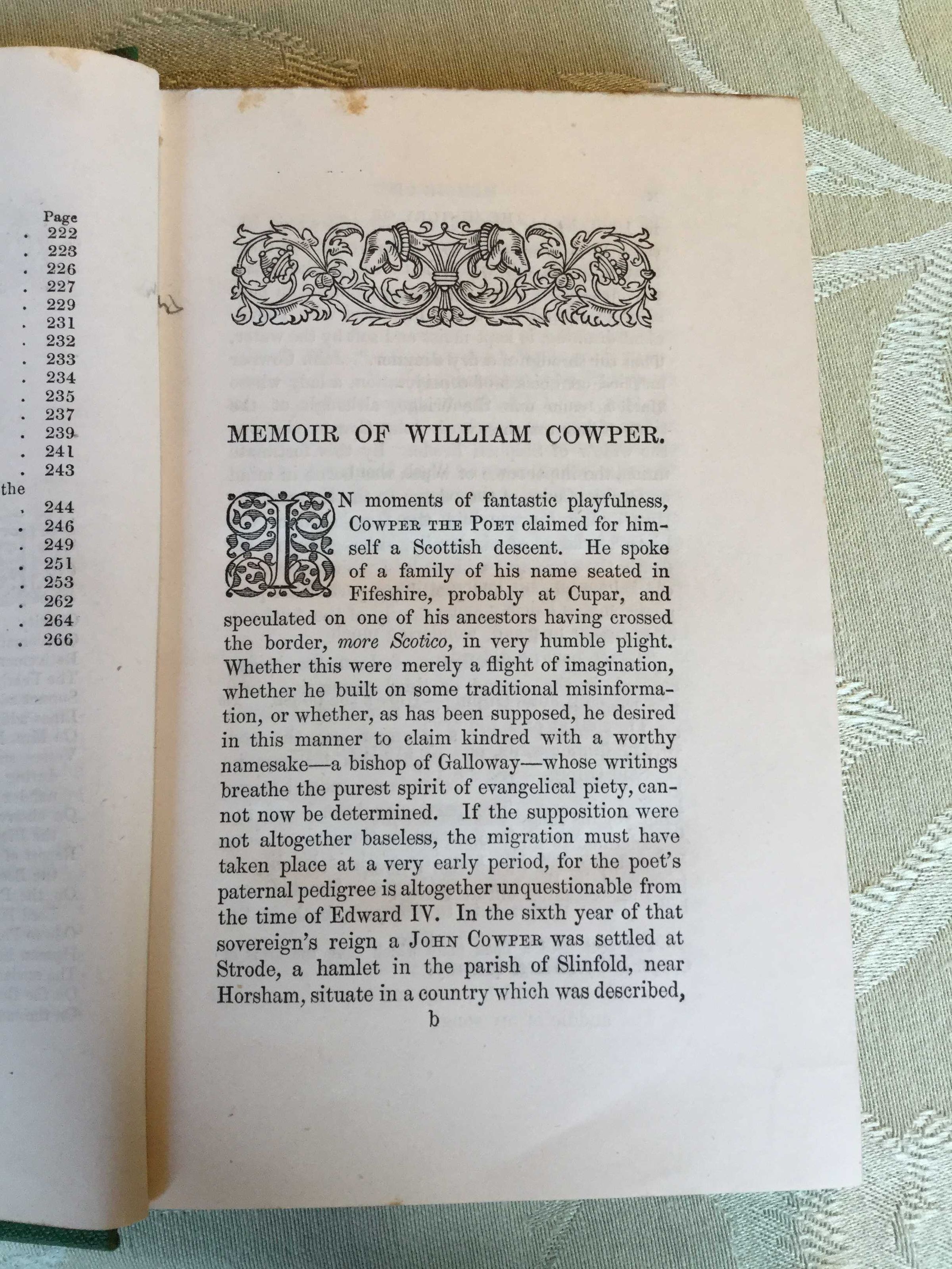 Memoir of Cowper - Volume 1 of 3; PHYSDESC: Hardback in Green Cloth - Design in gold - Front Title and spine - 17.5 cm tall and 11.5cm wideCollection