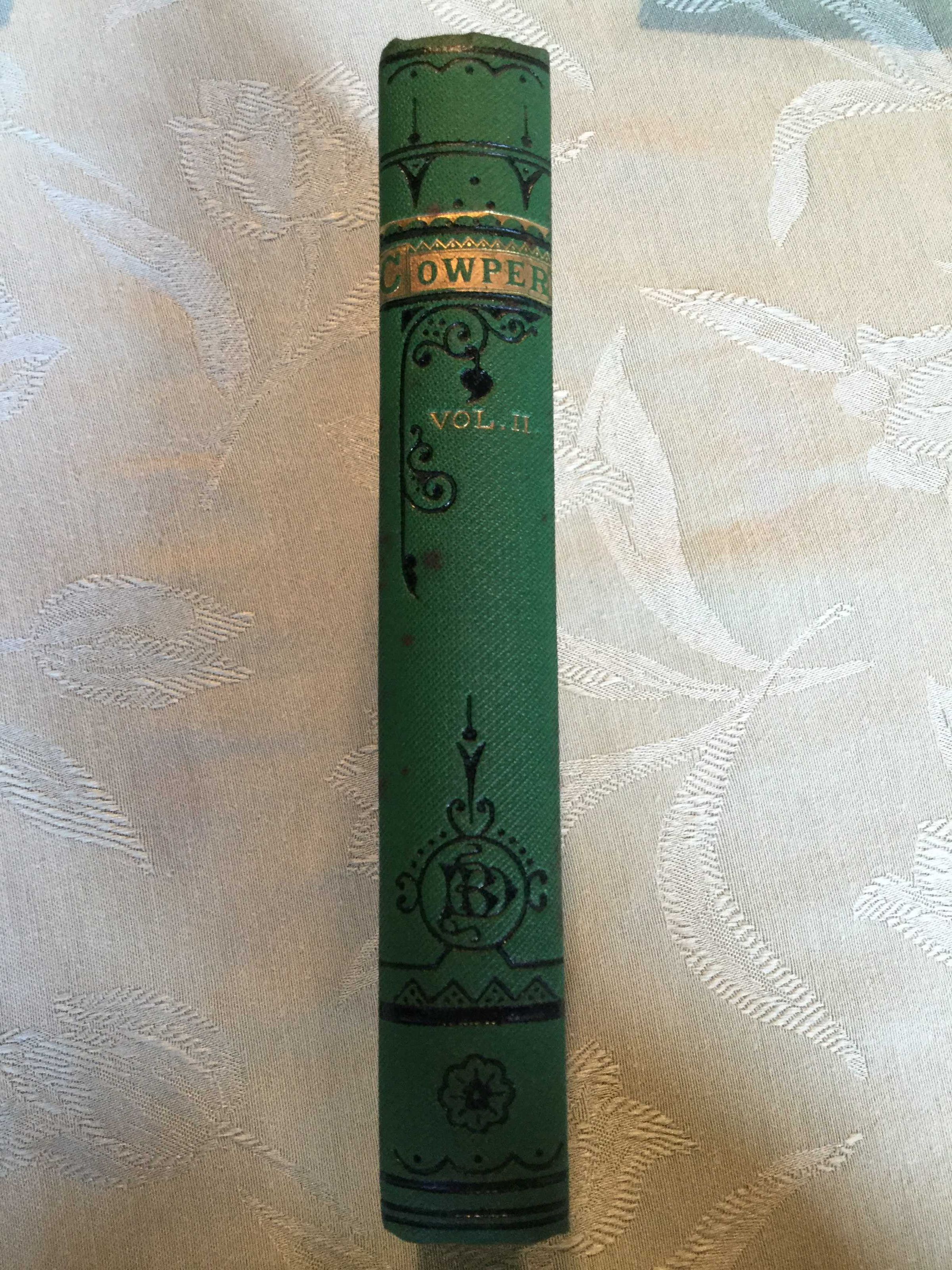 Memoir of Cowper - Volume 2 of 3; PHYSDESC: Hardback in Green Cloth - Design in gold - Front Title and spine - 17.5 cm tall and 11.5cm wideCollection