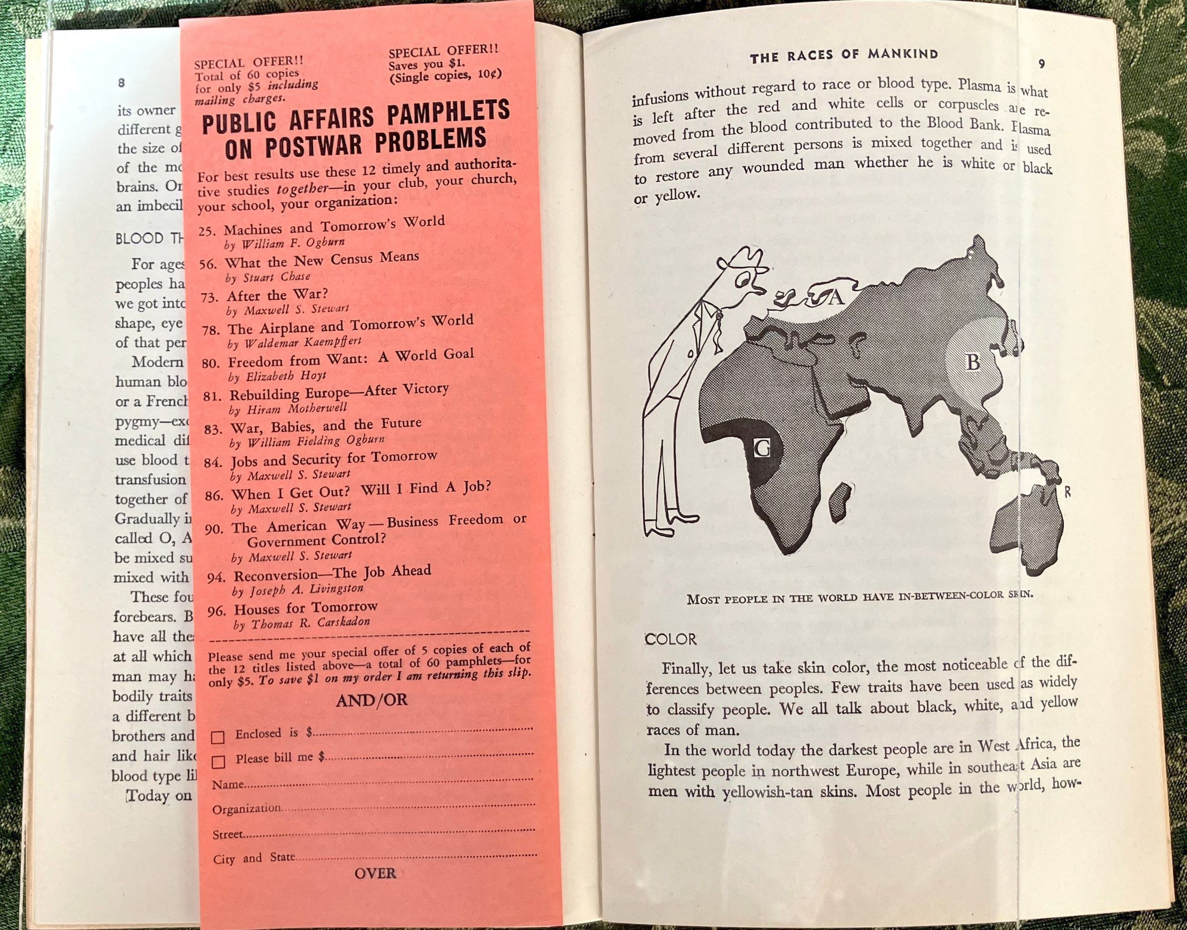 Anti-racist pamphlet couched in racist images and stereotypes promoting unity after the warInscription/Signature/Marks