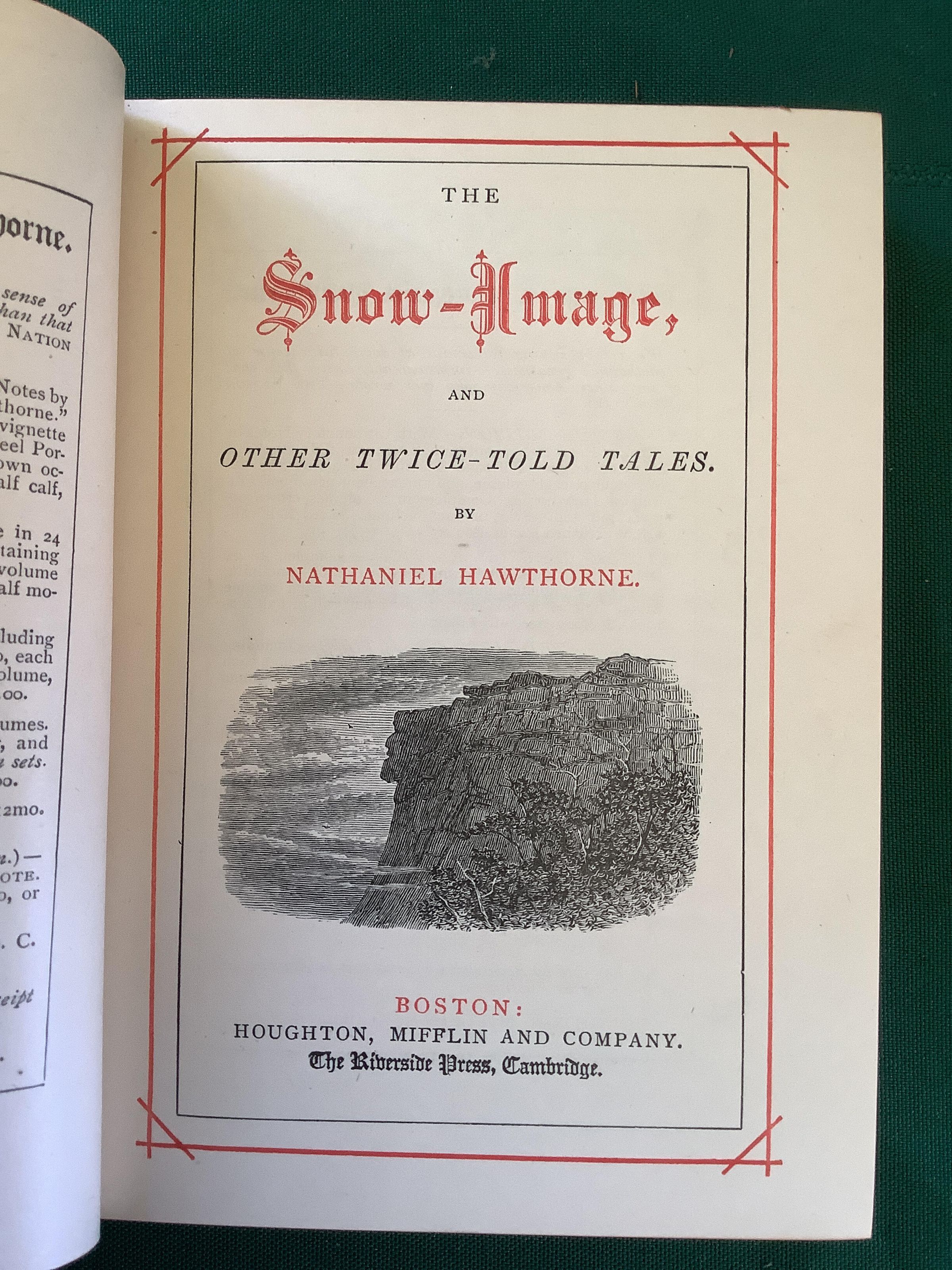 The Snow-Image, and Other Twice-Told Tales is a collection of short stories by American author Nathaniel Hawthorne. Released in late 1851 with a copyright of 1852, it is the final collection of tales by Hawthorne published in his lifetime. -WikipediaCreate Date