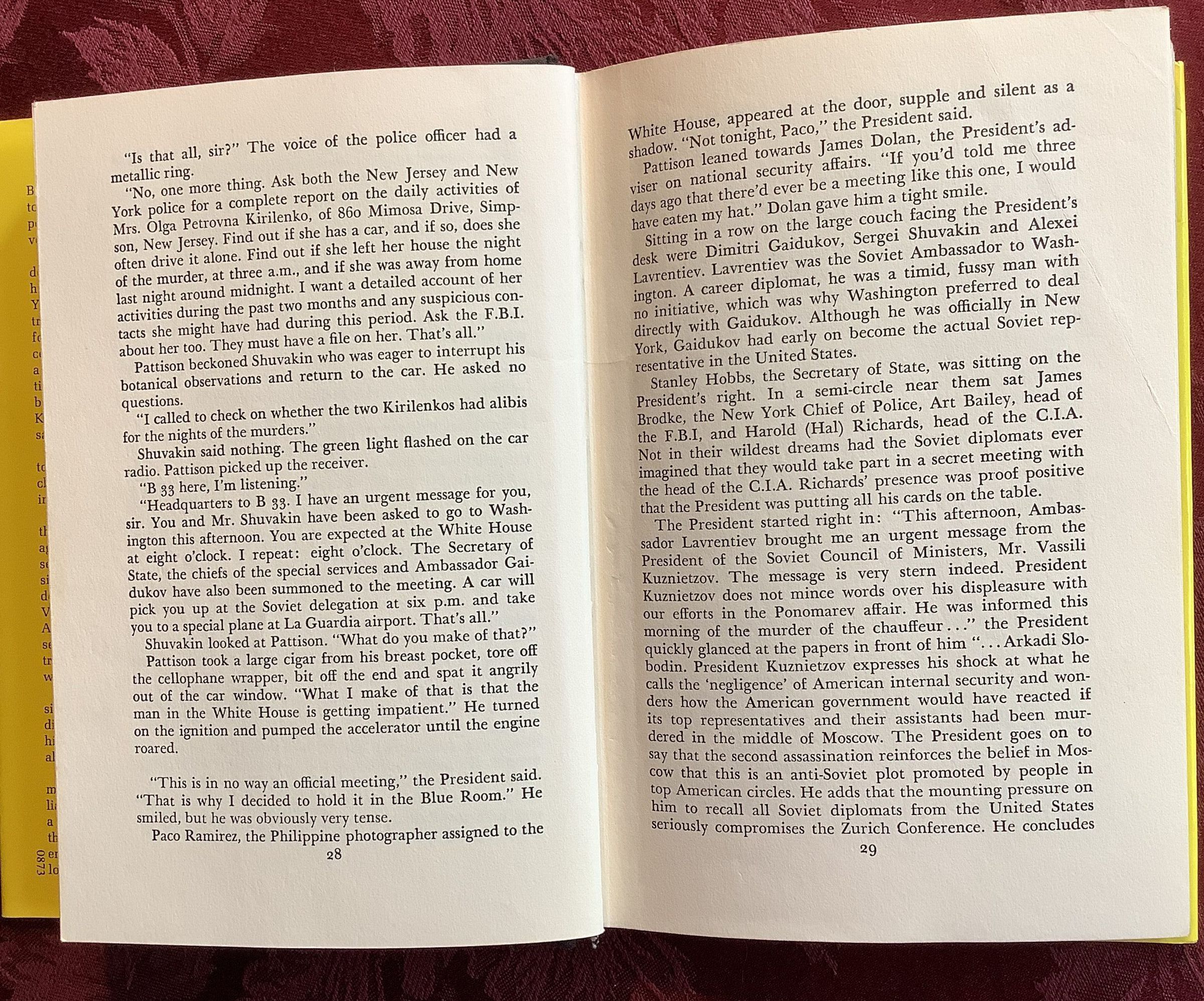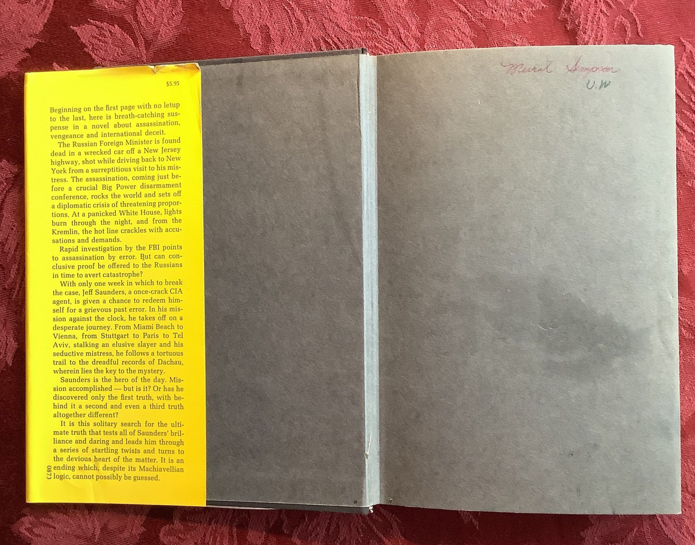 This is mystery novel about a former CIA agent searching for the killer of the Russian Foreign Minister.Inscription/Signature/Marks