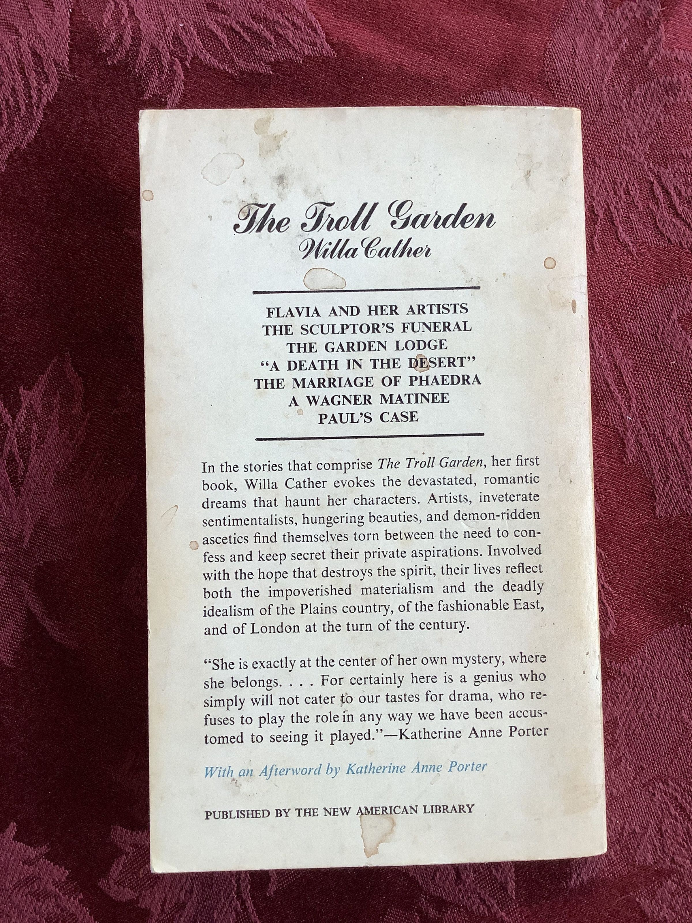 This is a book of short stories, 7 stories set at the turn of the century. Willa Cather’s first book that explores the “devastated, romantic dreams that haunt her characters.” This volume was first published in 1905.Create Date