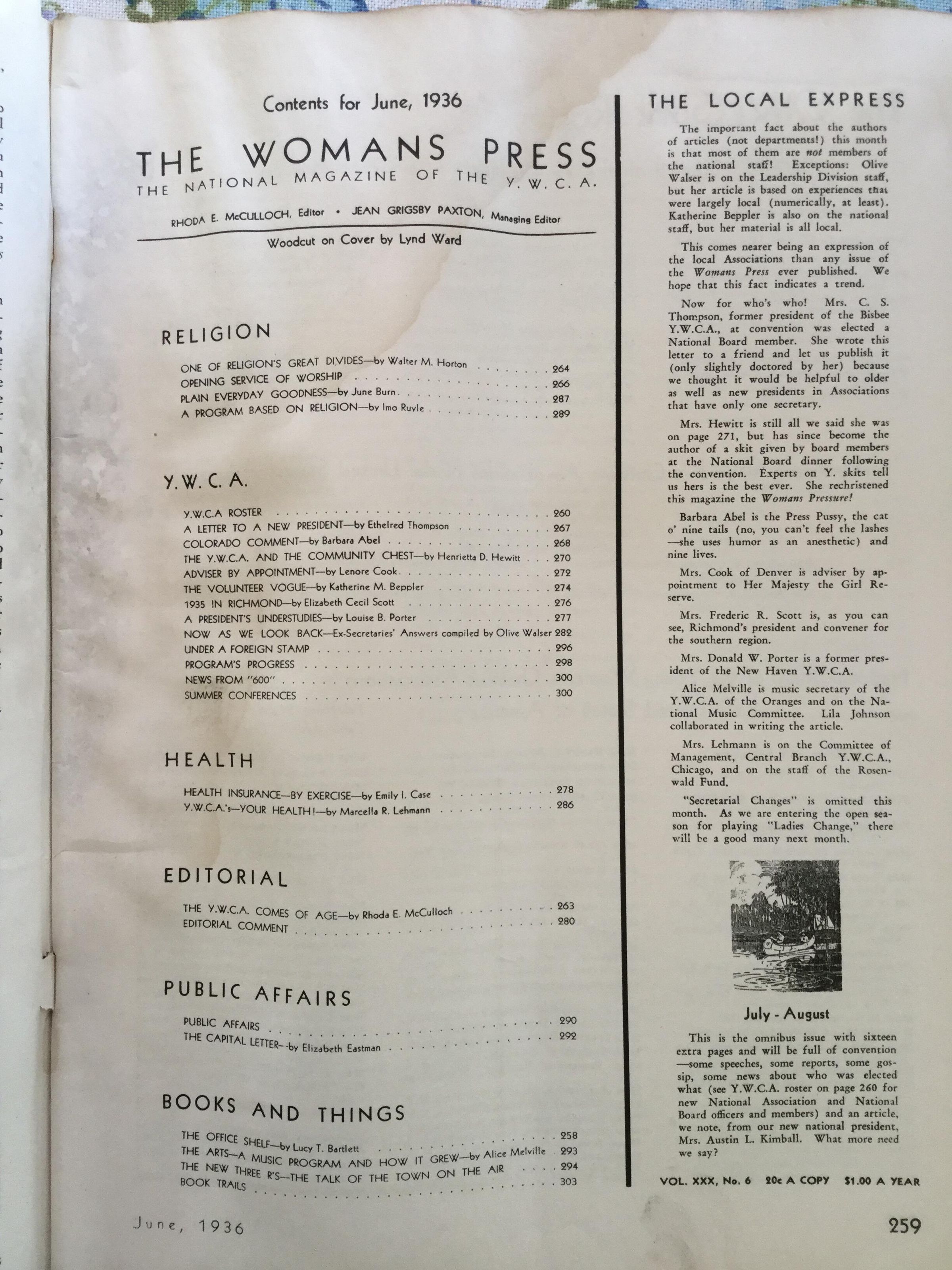 This is the omnibus issue with sixteen extra pages and will be full of convention--some speeches, some news about who was elected what (see Y. W. C. A. roster on page 260 for new National Association and National Board officer sand members) and an article, we note, from our new national president, Mrs. Austin L. Kimball. What more need we say?Create Date