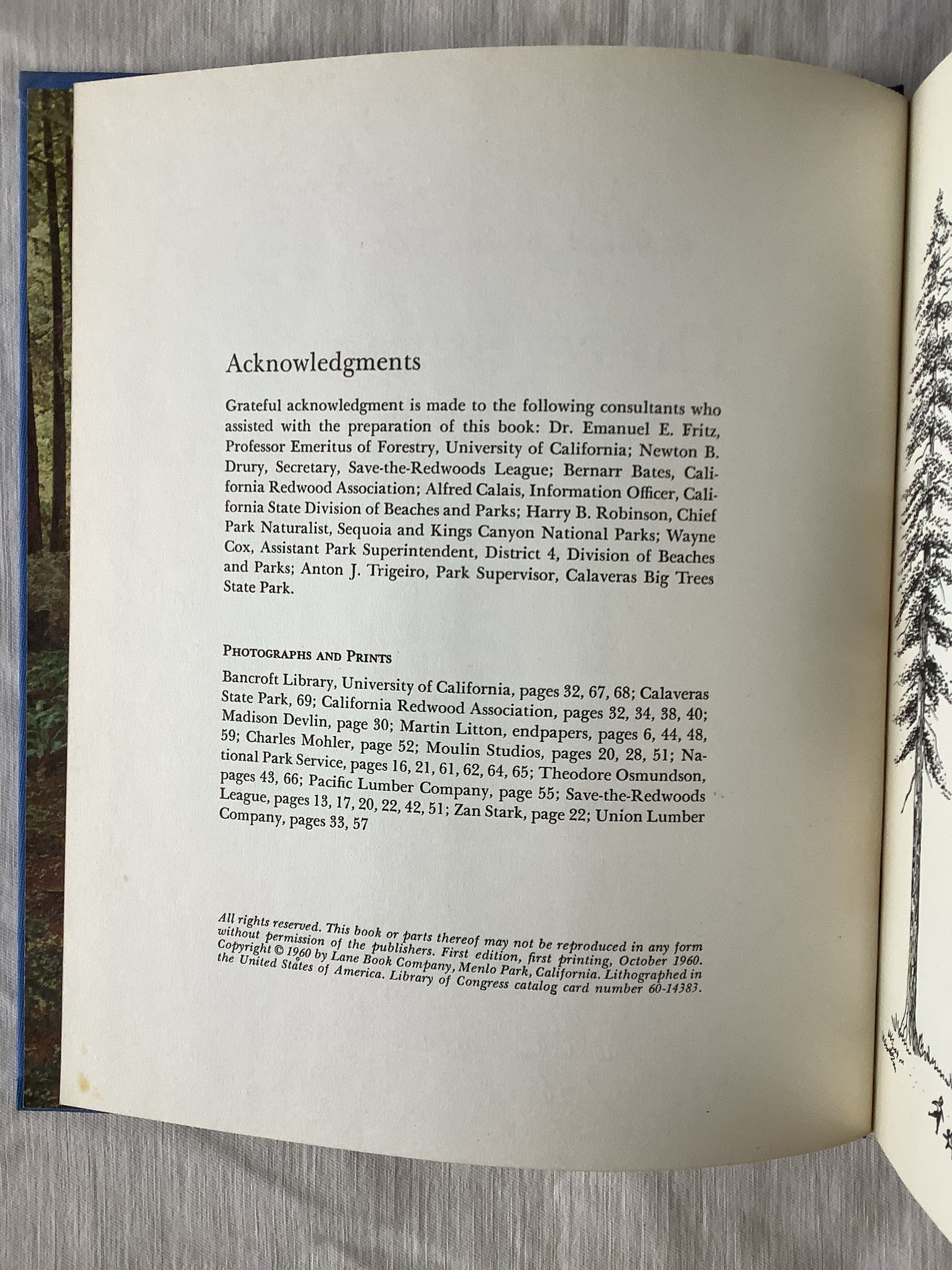 One of the true wonders of the West. the stately redwood trees of California are known the world over for their beauty, their enormous size, and their long life. Here are fascinating facts, and beautiful pictures of these magnificent trees, presented with the informality of a campfire talk. --Book jacket.Inscription/Signature/Marks