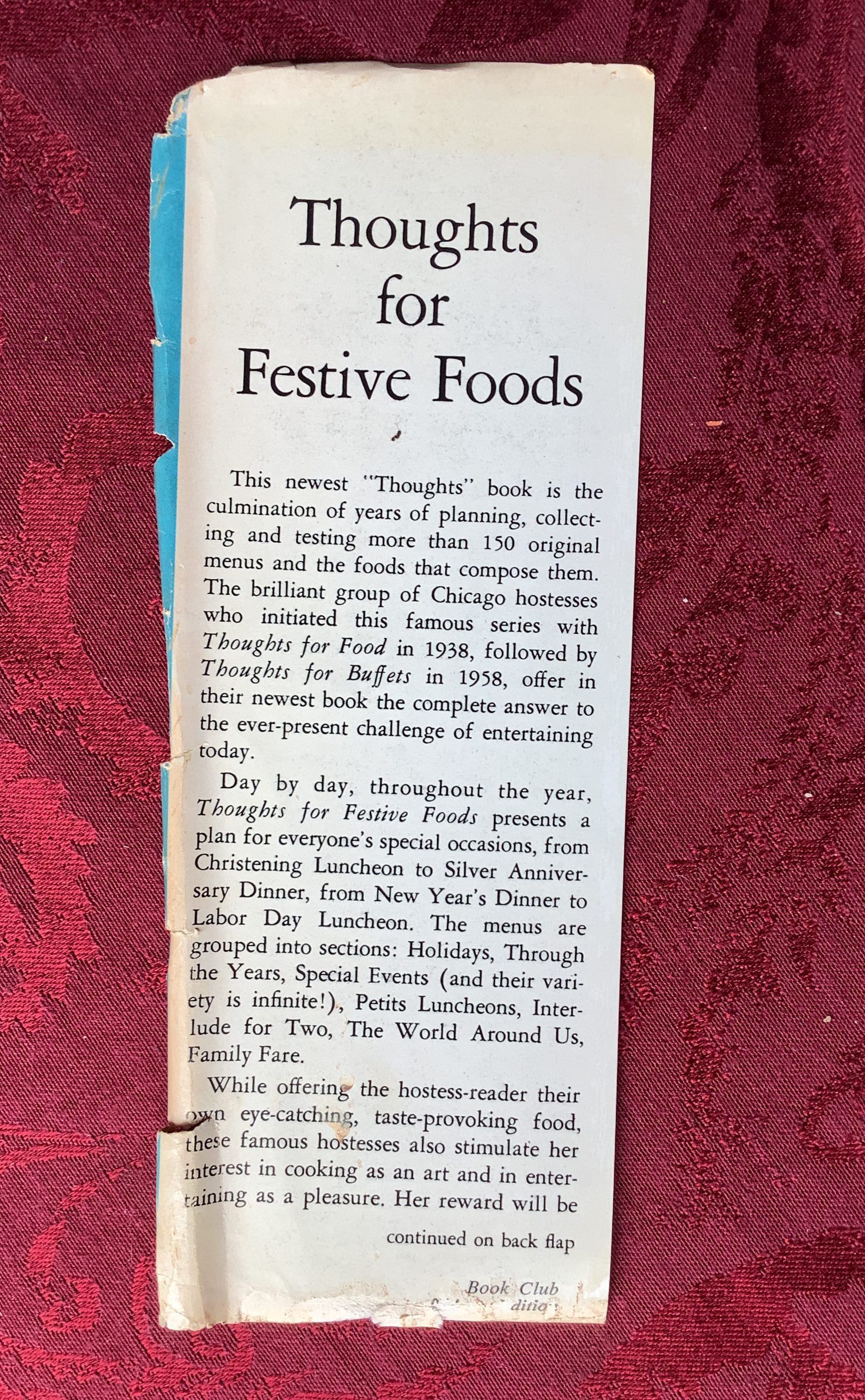 The newest "Thoughts" book is the culmination of years of planning, collecting and testing more than 150 original menus and the foods that compose them.-book jacketCreate Date