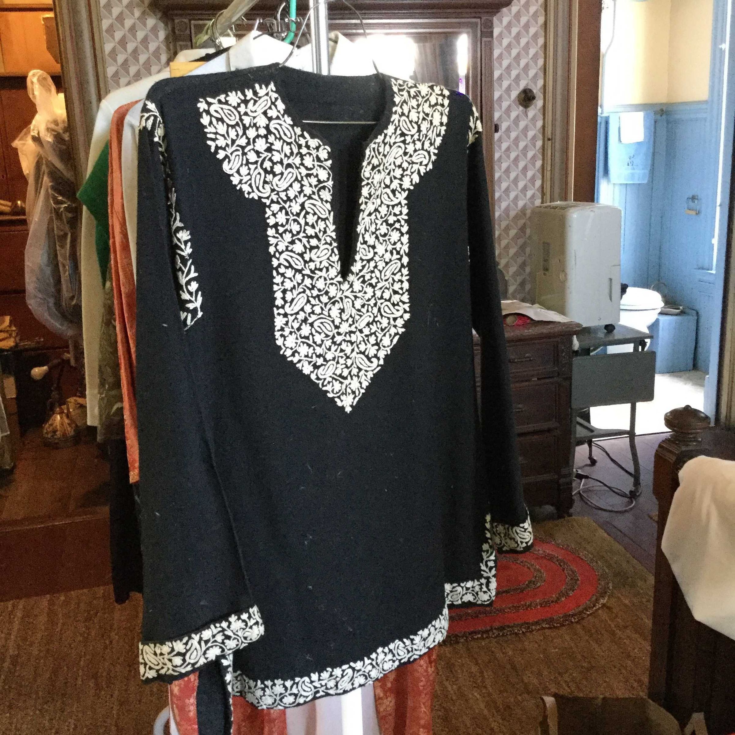 tunic, black w/ white embroidery
