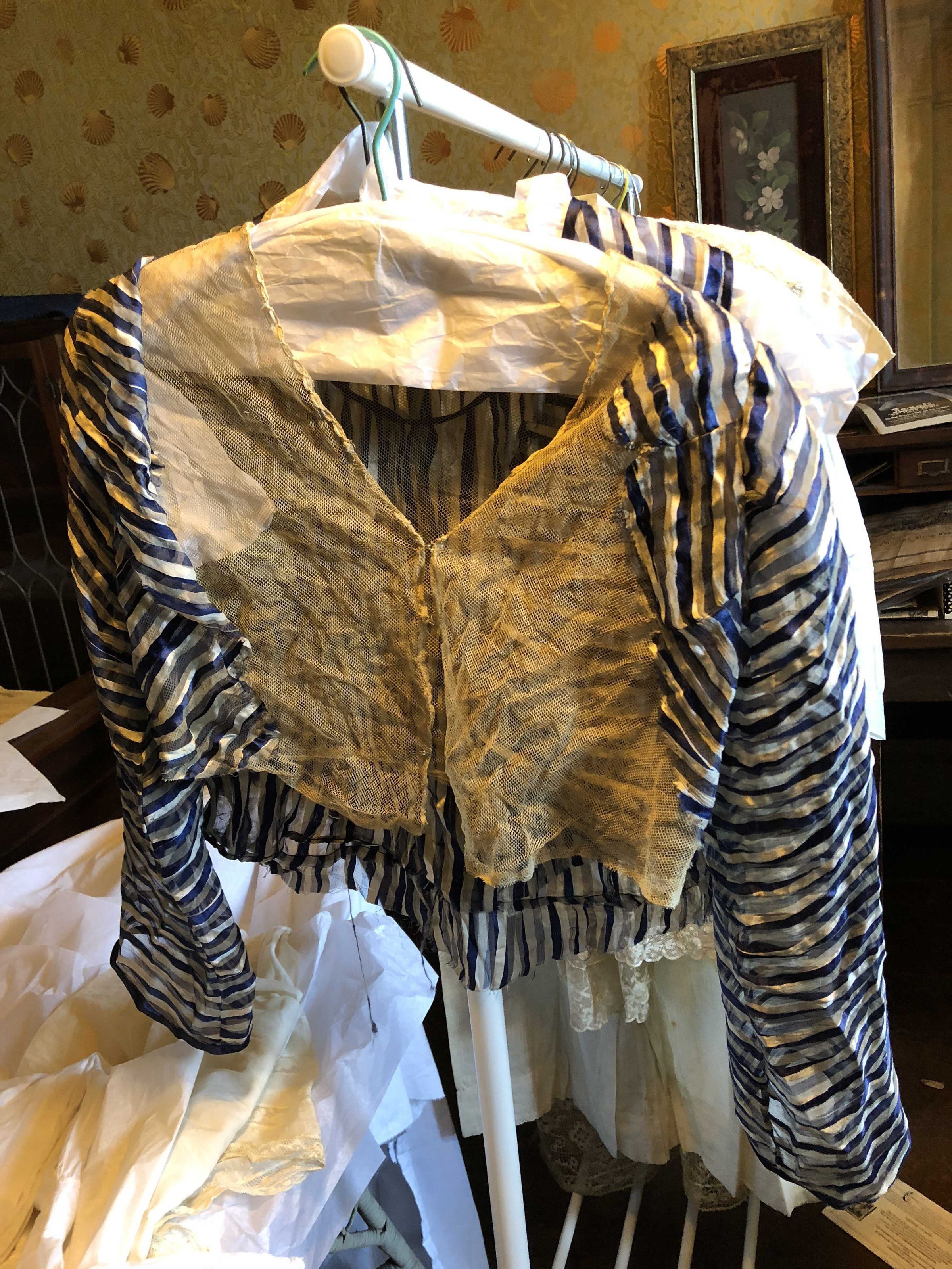 Under blouse. Blue silk stripes with 2018.15.1Entry/Object ID