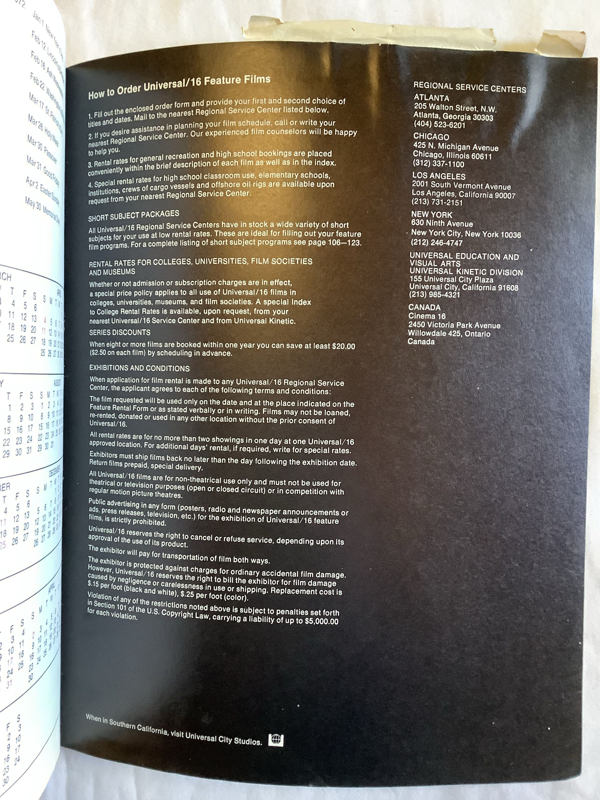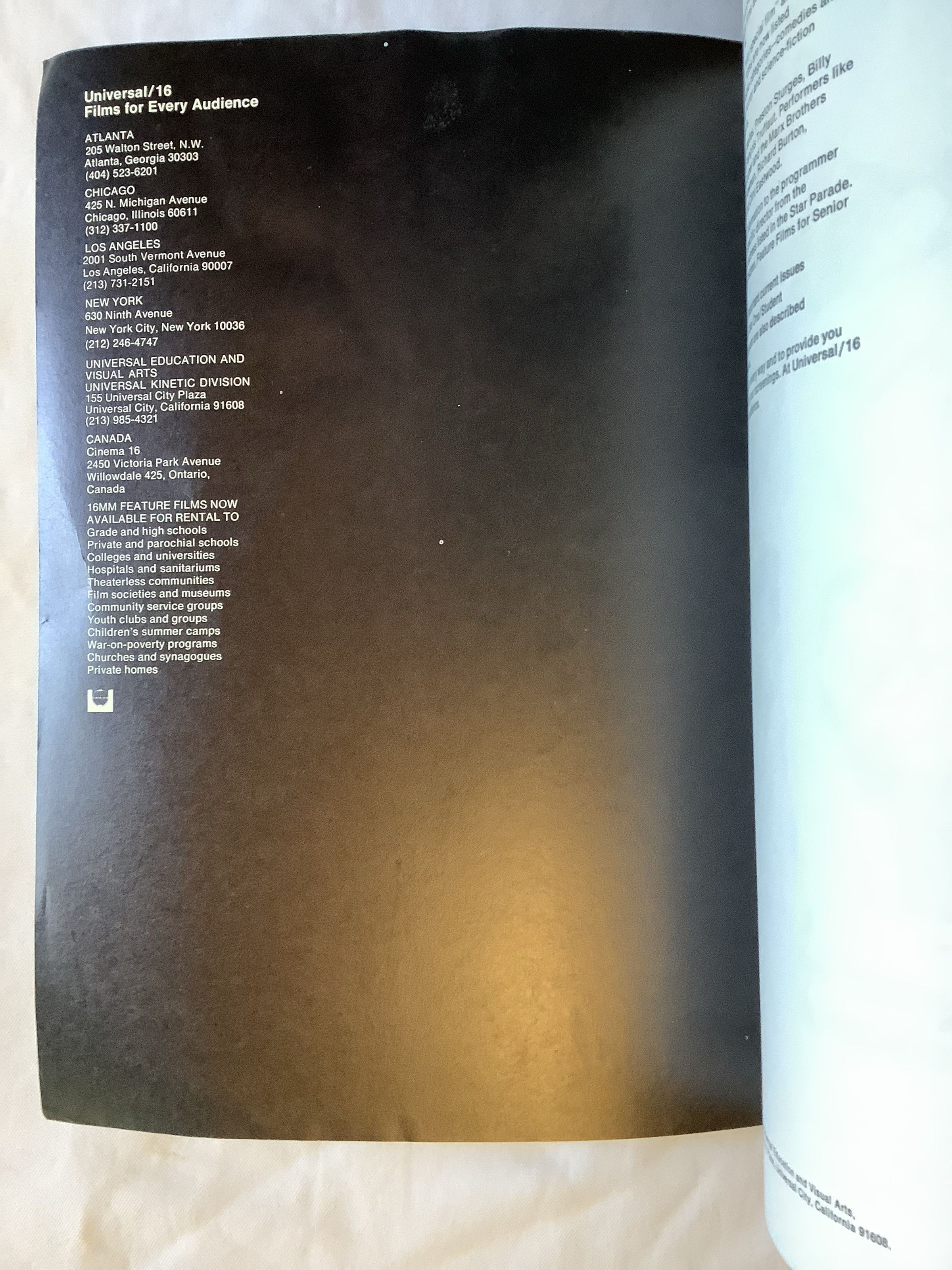 Universal Studios 16mm Film Catalog - Rental Booking for Group Showings