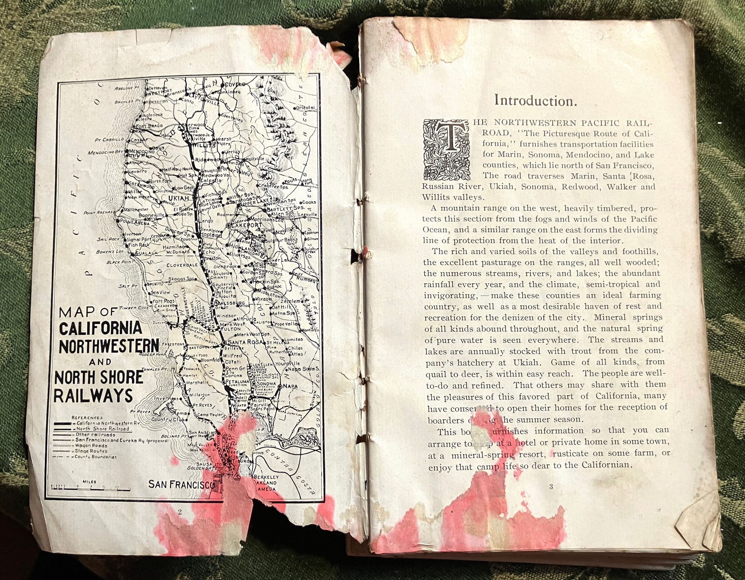 Guidebook to traveling Northern California: "This book furnishes information sot hat you can arrange to stop at a hotel or private home in some town, at a mineral-sprint resort, rusticate on some farm, or enjoy that camp life so dear to the Californian.Create Date