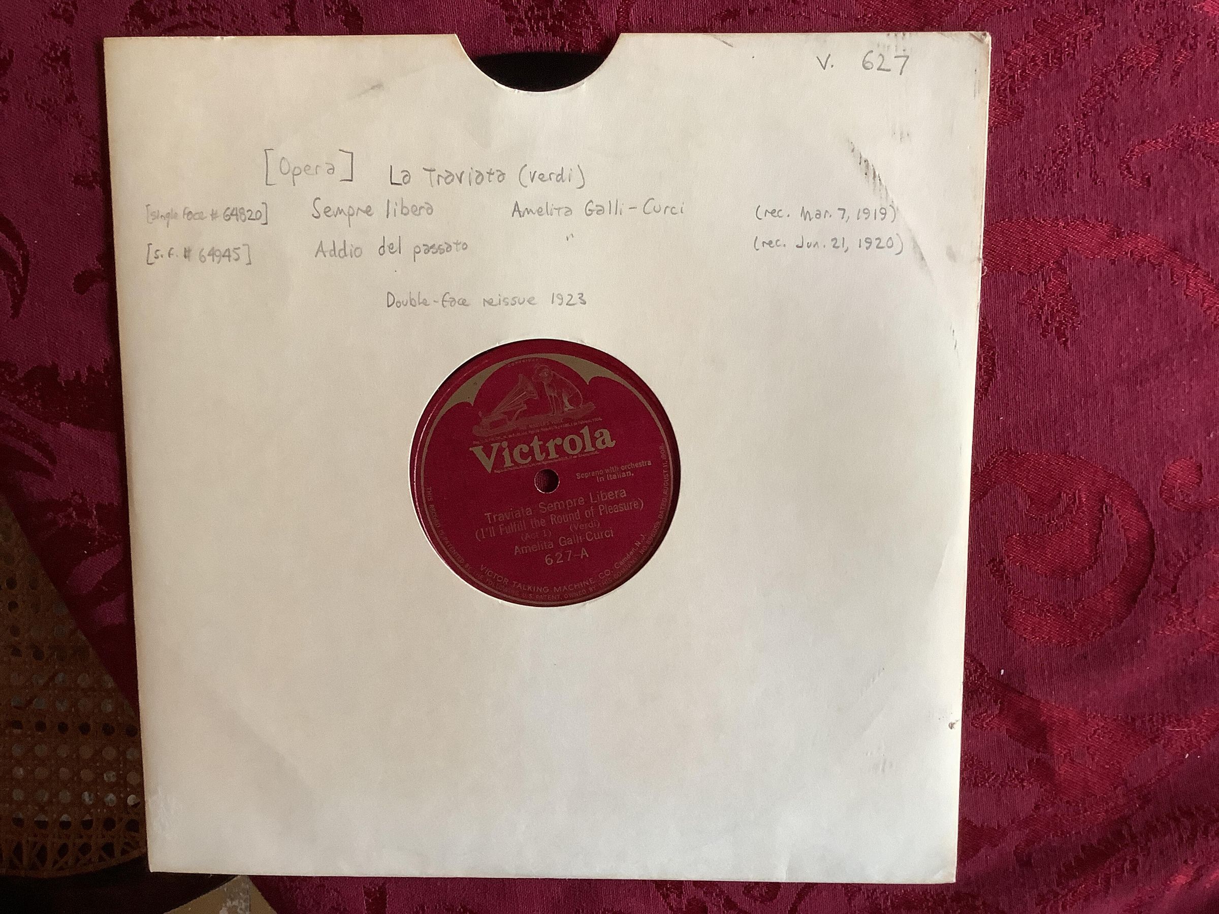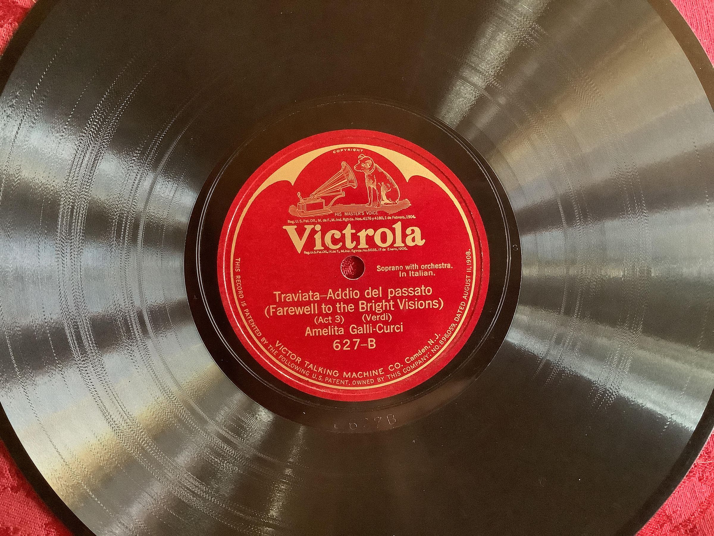 Side B: Traviata - Addio del passato (Farewell to the Bright Visions), Act III, Verdi. Amelita Galli-Curci. 627B.Create Date
