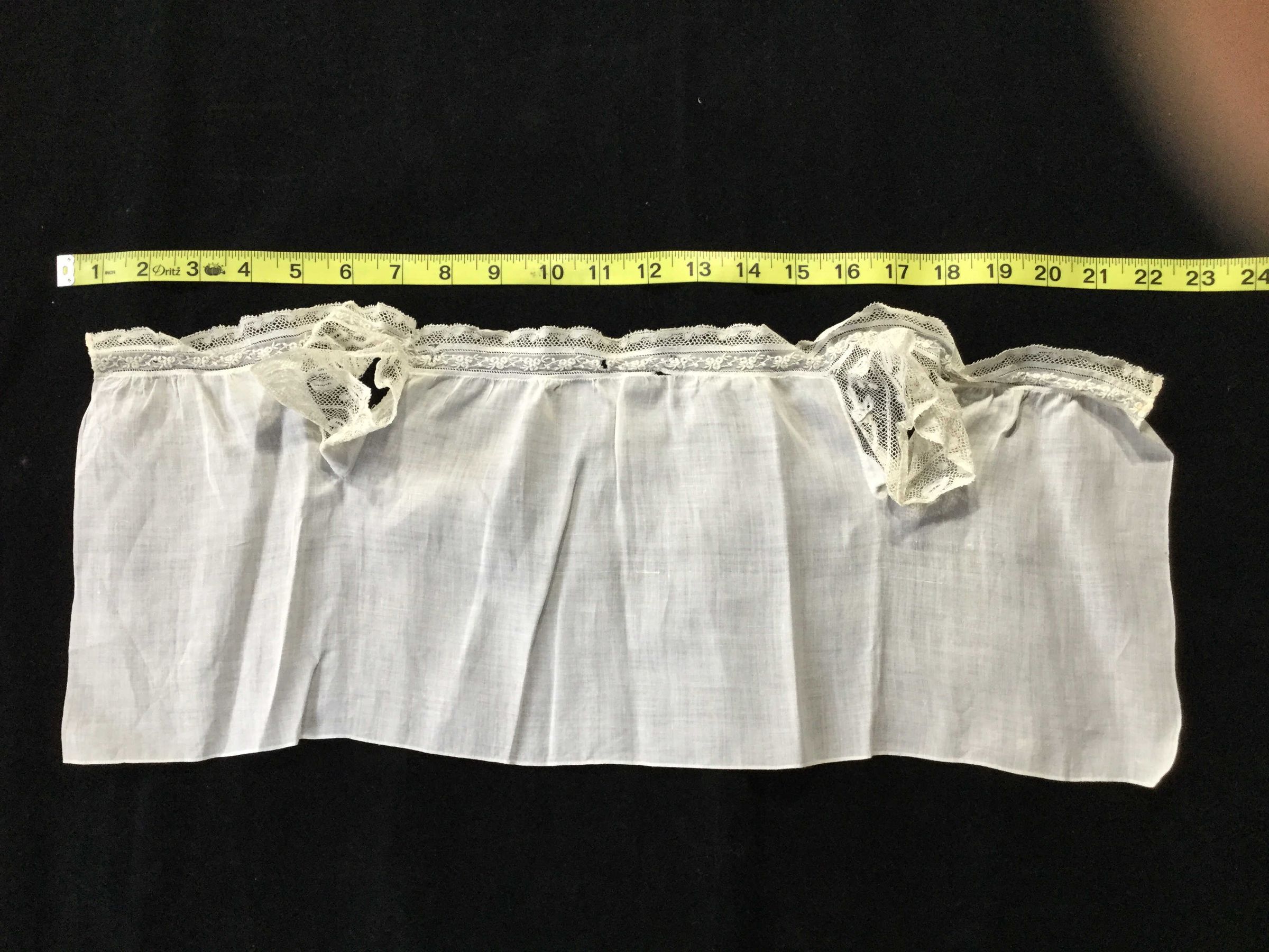White cotton W.A.Bray baby undershirt with lace sleeves and trim.