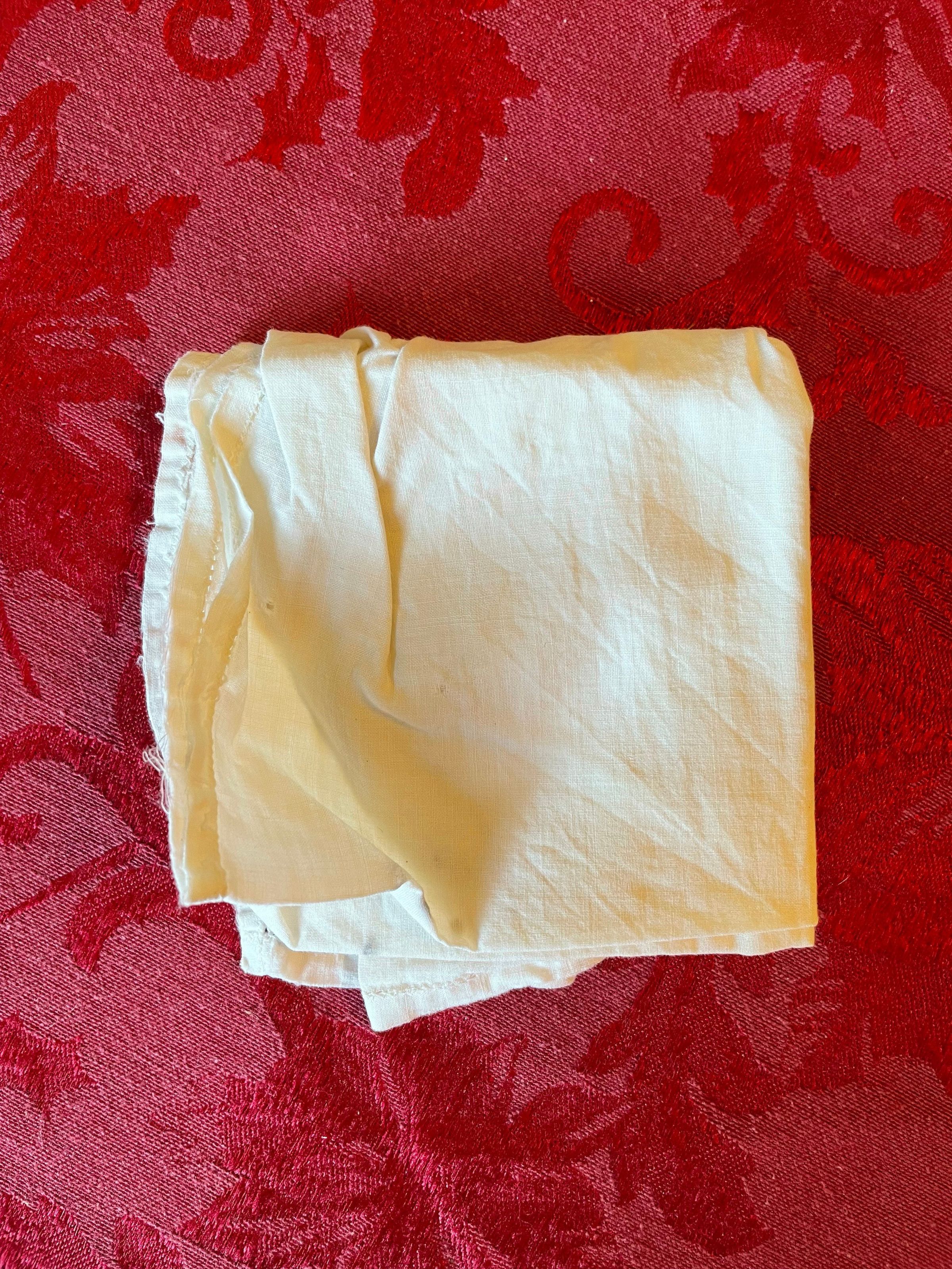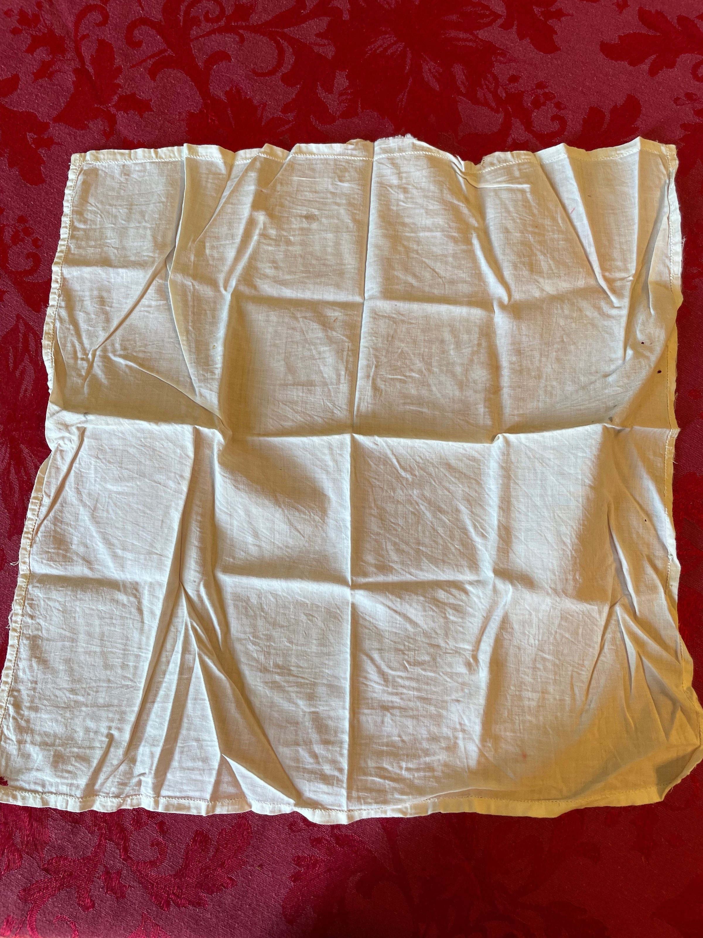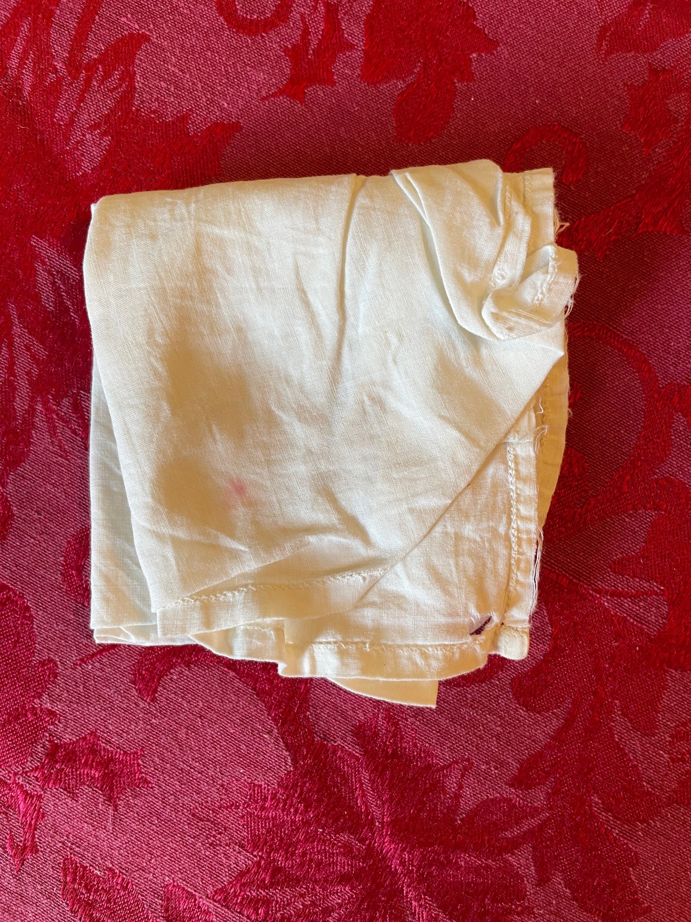 A plain white handkerchief that’s free or any patterns and adornment save for the stitching along the border.