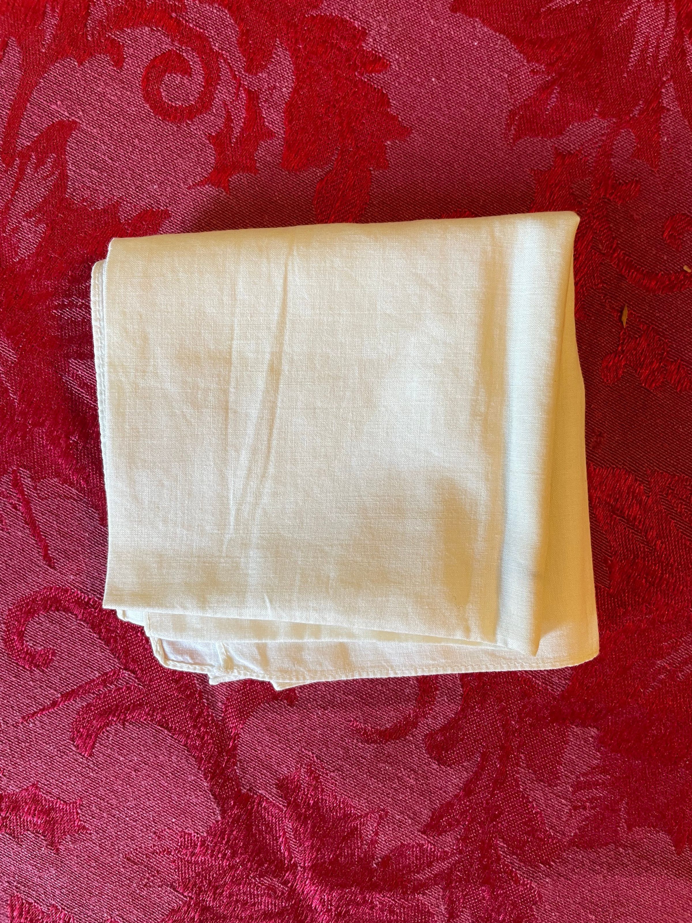 A larger white handkerchief with no visible pattern nor adornment that stretches quite wide and also has no staining. It might’ve been deemed more practical than those with intricate patterns.Create Date
