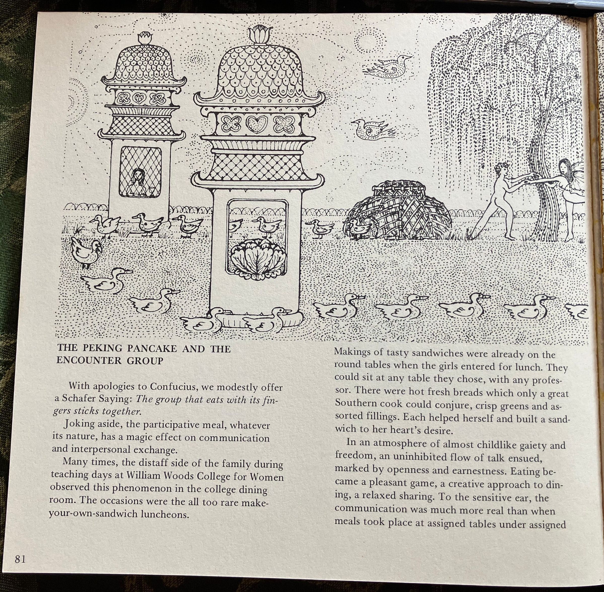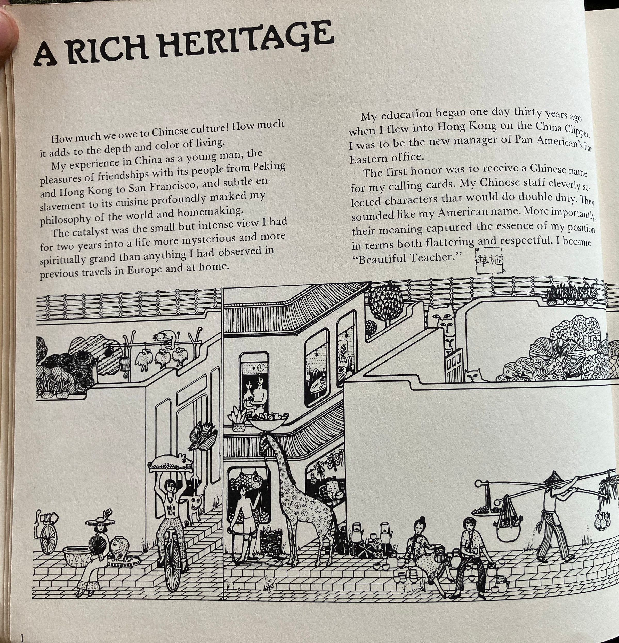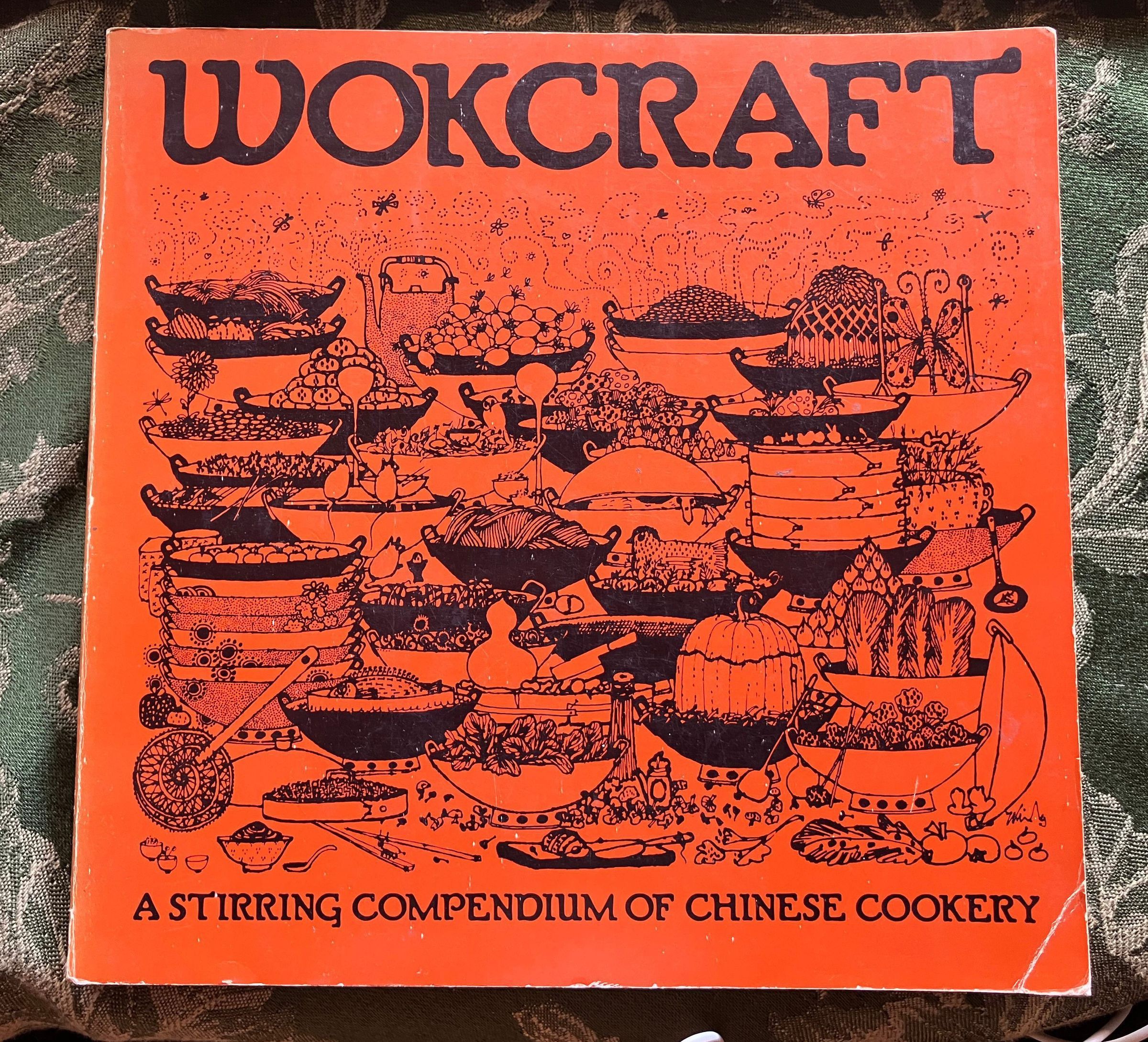 Title and subtitle, line drawing of woks with various foods in them