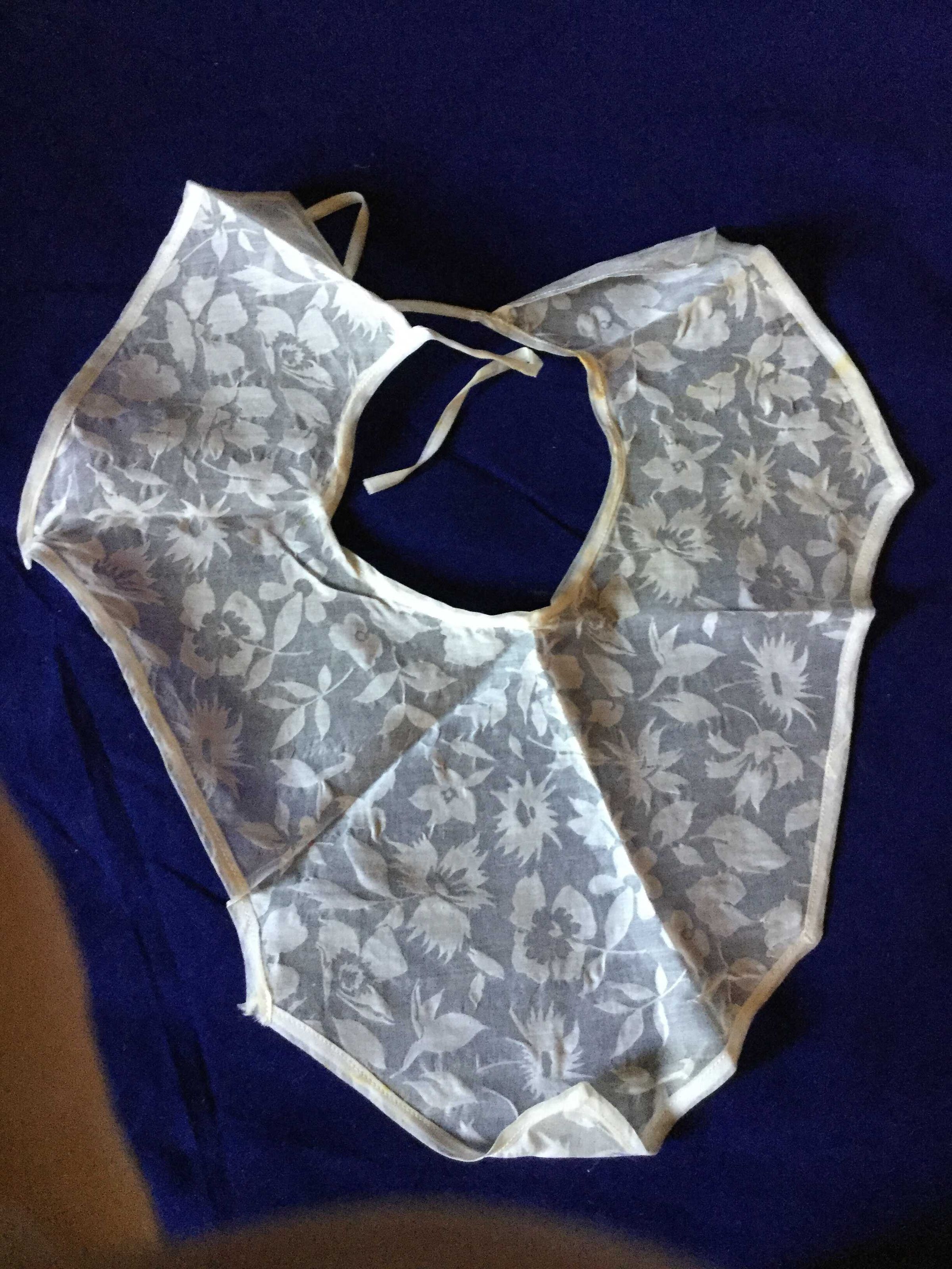 yoke with tie back, off white cotton with floral burnout (?) design