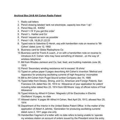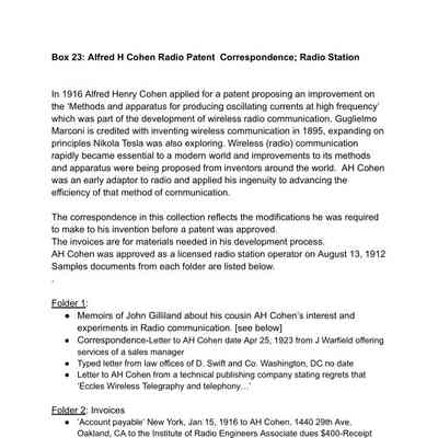 23. Alfred H Cohen: Radio patent correspondence; Radio Station
