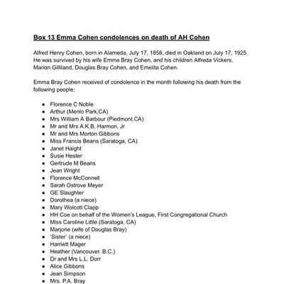 13. Emma B. Cohen: Condolences A.H. Cohen's death
