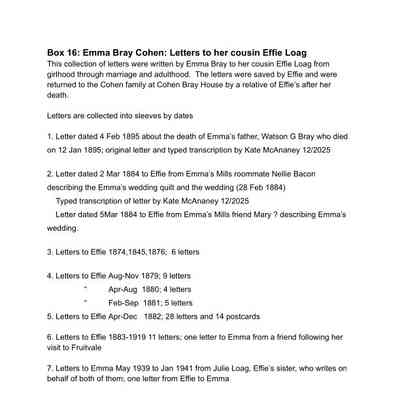 16. Emma Bray Cohen: Letters to cousin Effie Loag