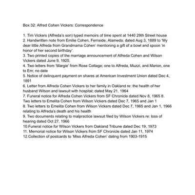 32. Alfreda Cohen Vickers: Correspondence