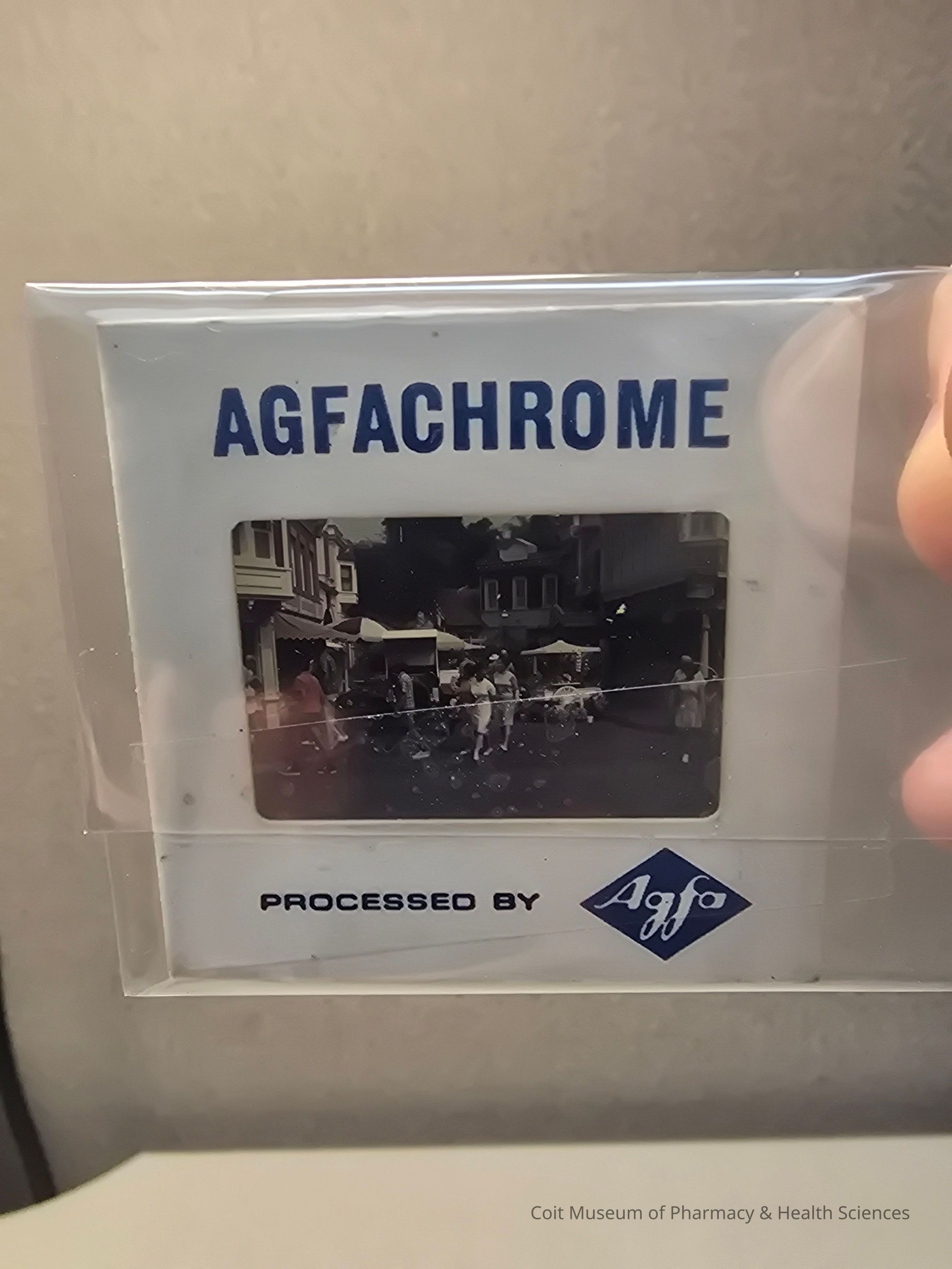 A 35mm microfilm depicting the exterior of the Upjohn Pharmacy at DisneylandCollection