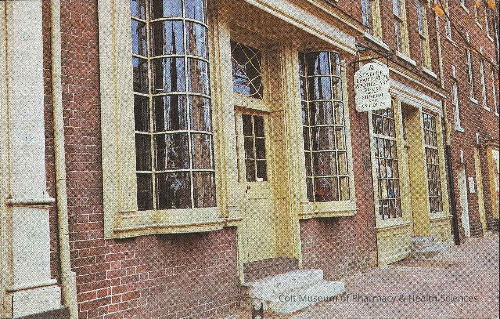 Postcard from the Stabler-Leadbeater Apothecary Shop Museum, 107 S. Fairfax St., Alexandria, VA 22314. Photo shows the exterior of the apothecary shop.