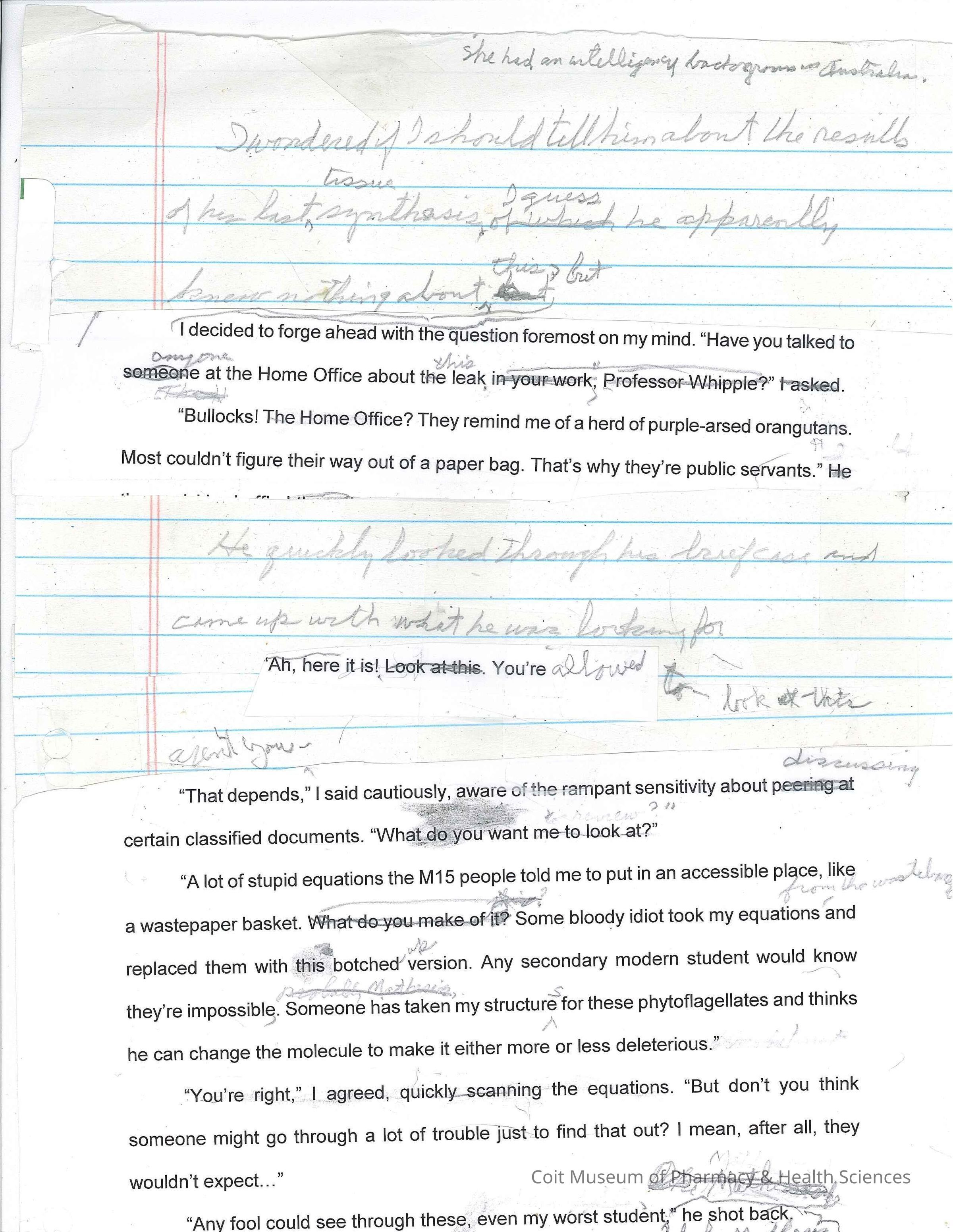 Draft of Russell's manuscript that exemplifies his unique writing process. Contains a series of printed and hand written pages taped together into a long roll of text, with a few detached supplementary pages.Collection