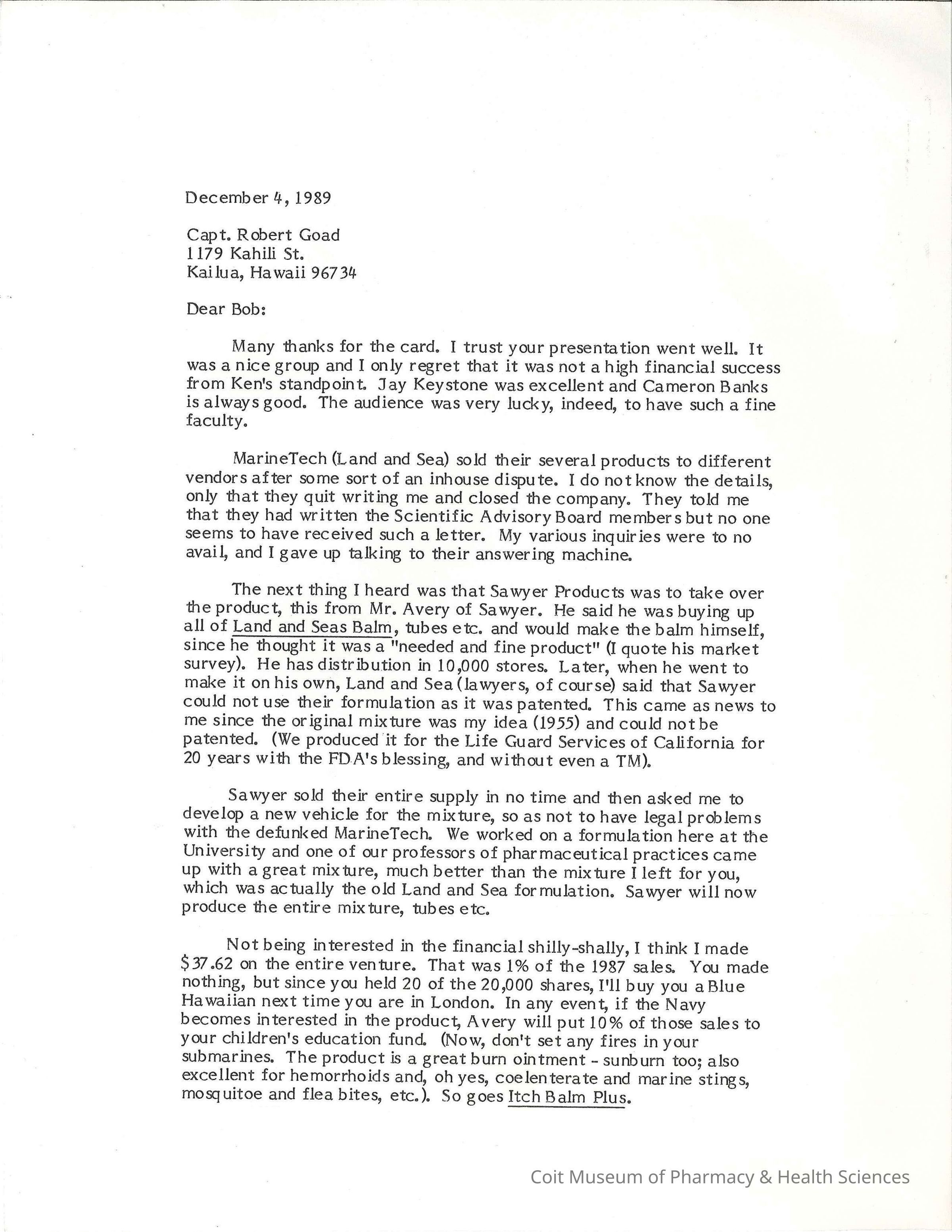Includes a response from Goad dated January 2, 1990. Some terminology corrected.