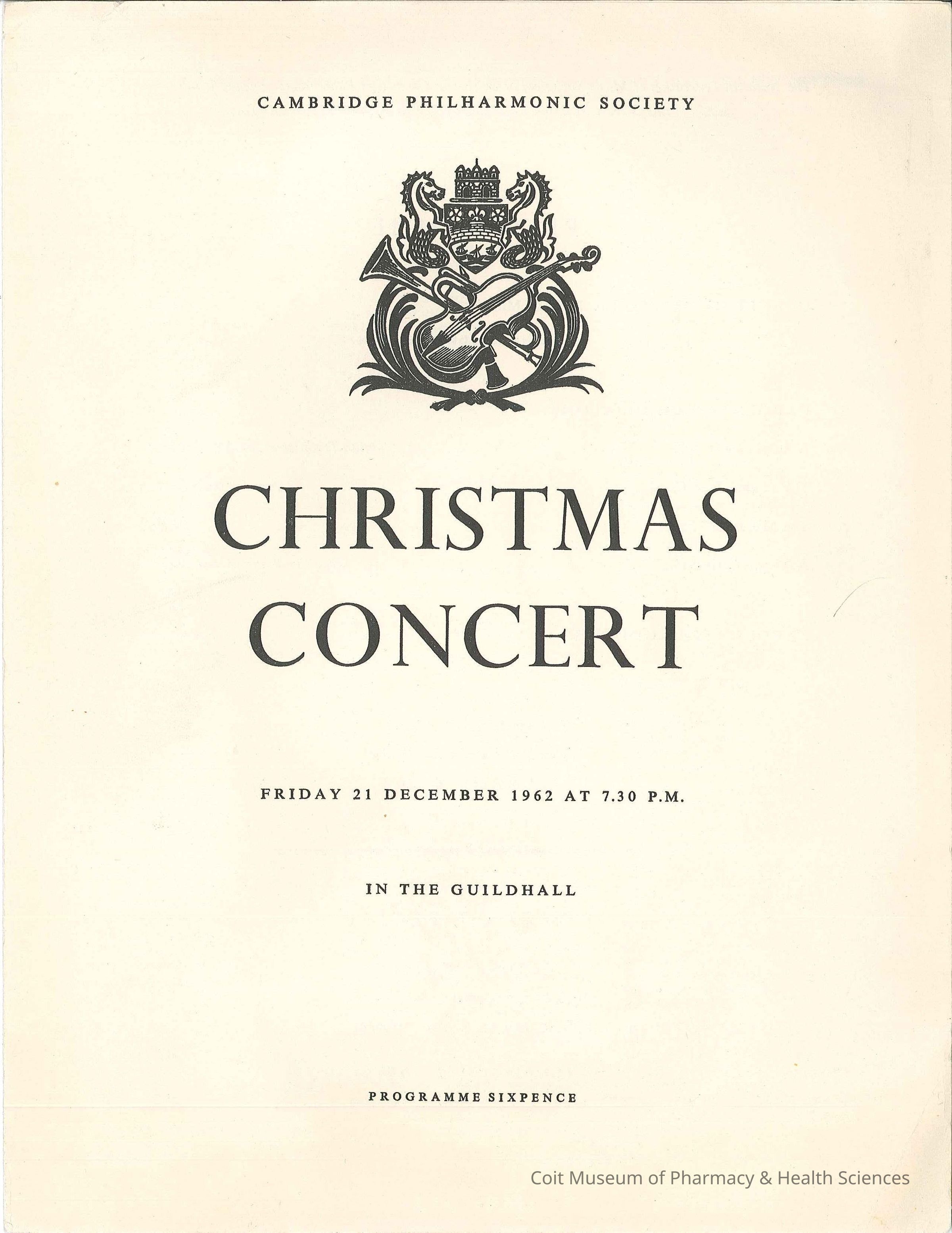 Program for the Cambridge Philharmonic Society's Christmas Concert from December 21, 1962.