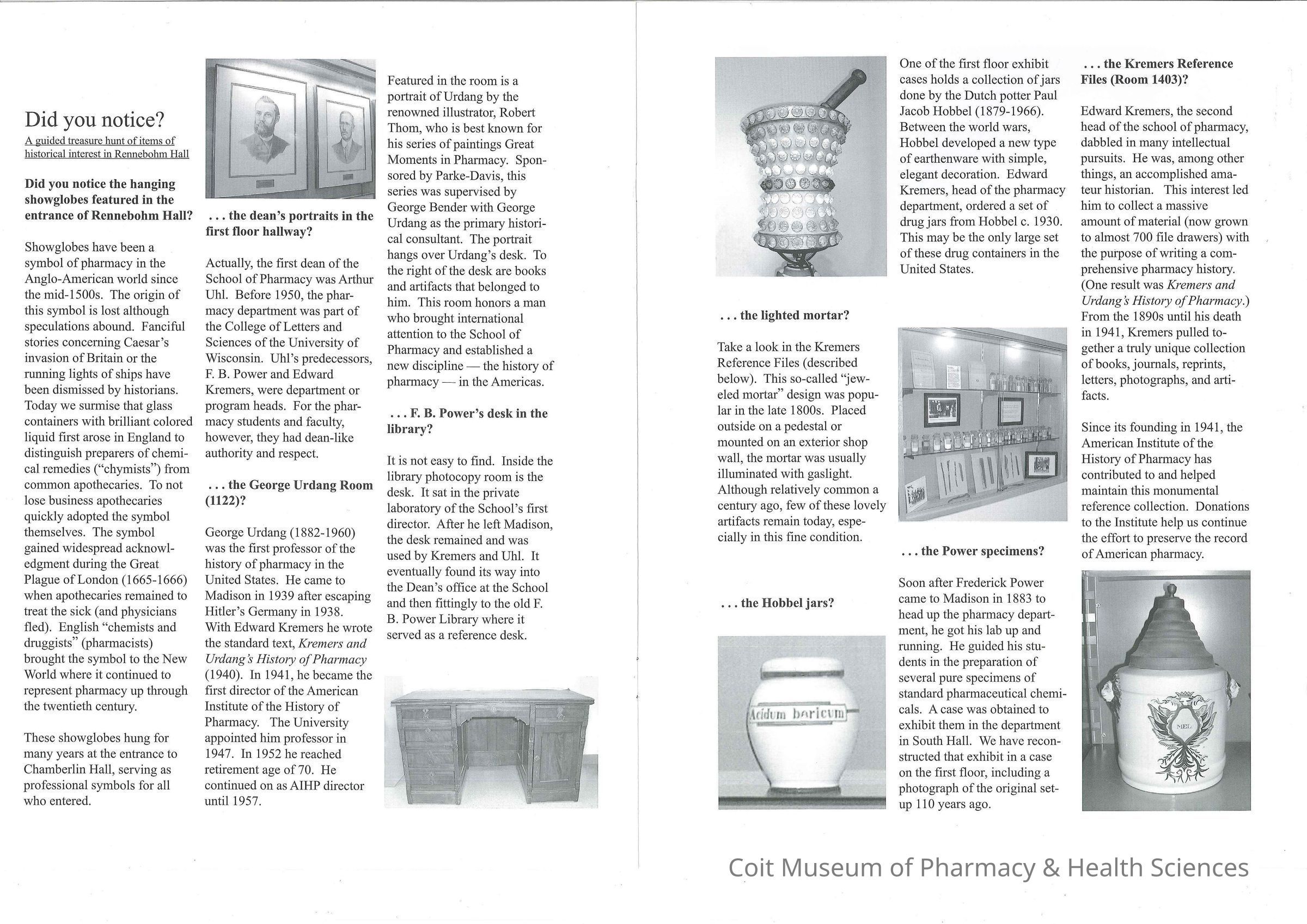 Brochure about Rennebohm Hall, home of the American Institute of the History of Pharmacy.Collection