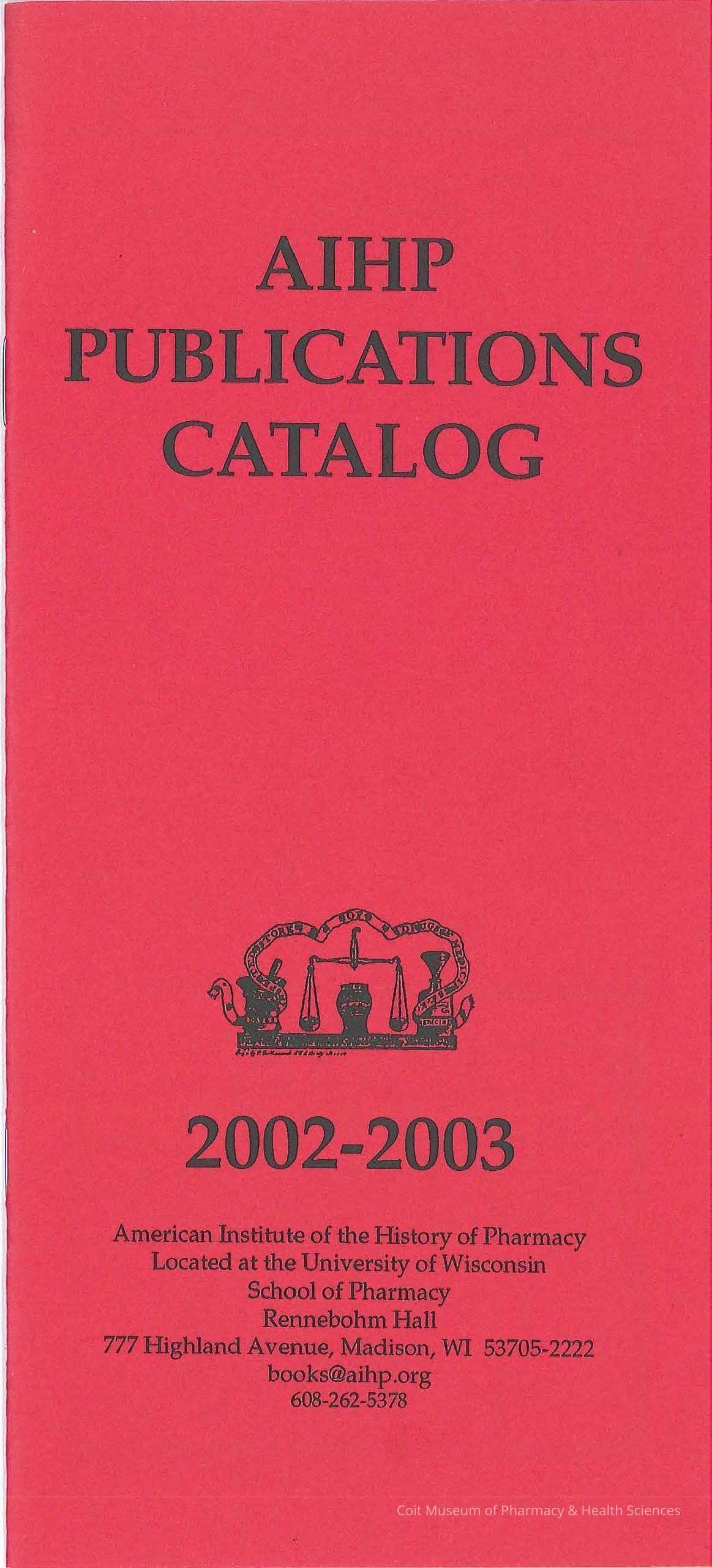 American Institute of the History of Pharmacy's AIHP Publications Catalog, 2002-2003.