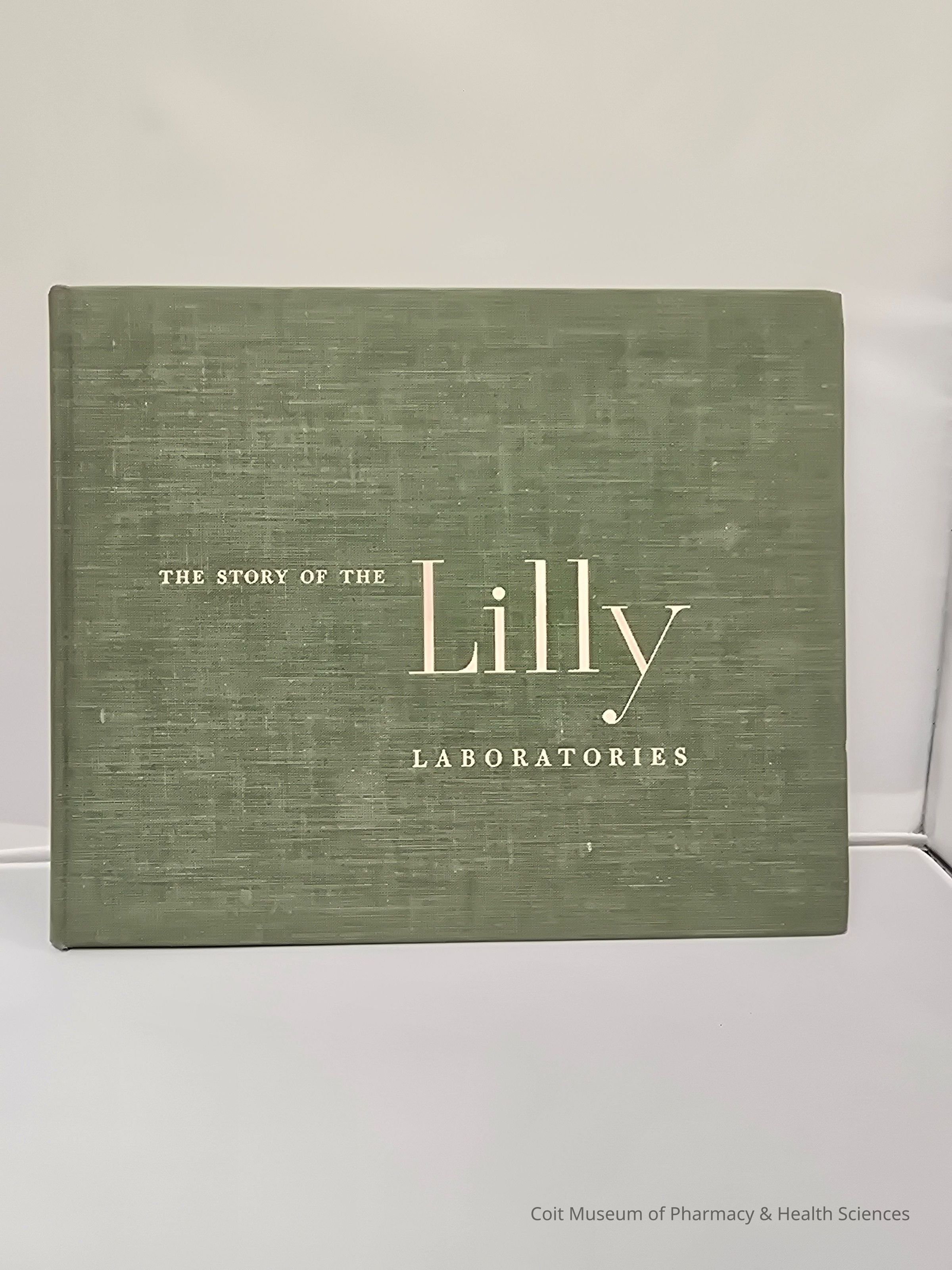 A green bound book labeled “The Story of the Lilly Laboratories”, which follows the history of Eli Lilly and Company. Signed “John B. Edmiston 1950” on the inside page of the front cover.Collection
