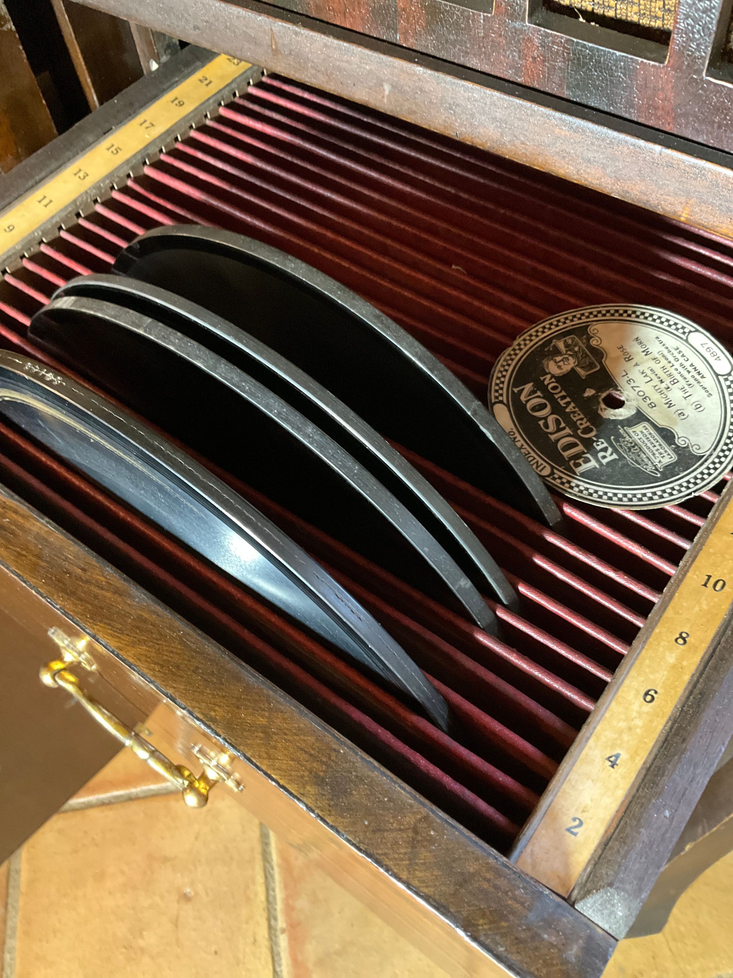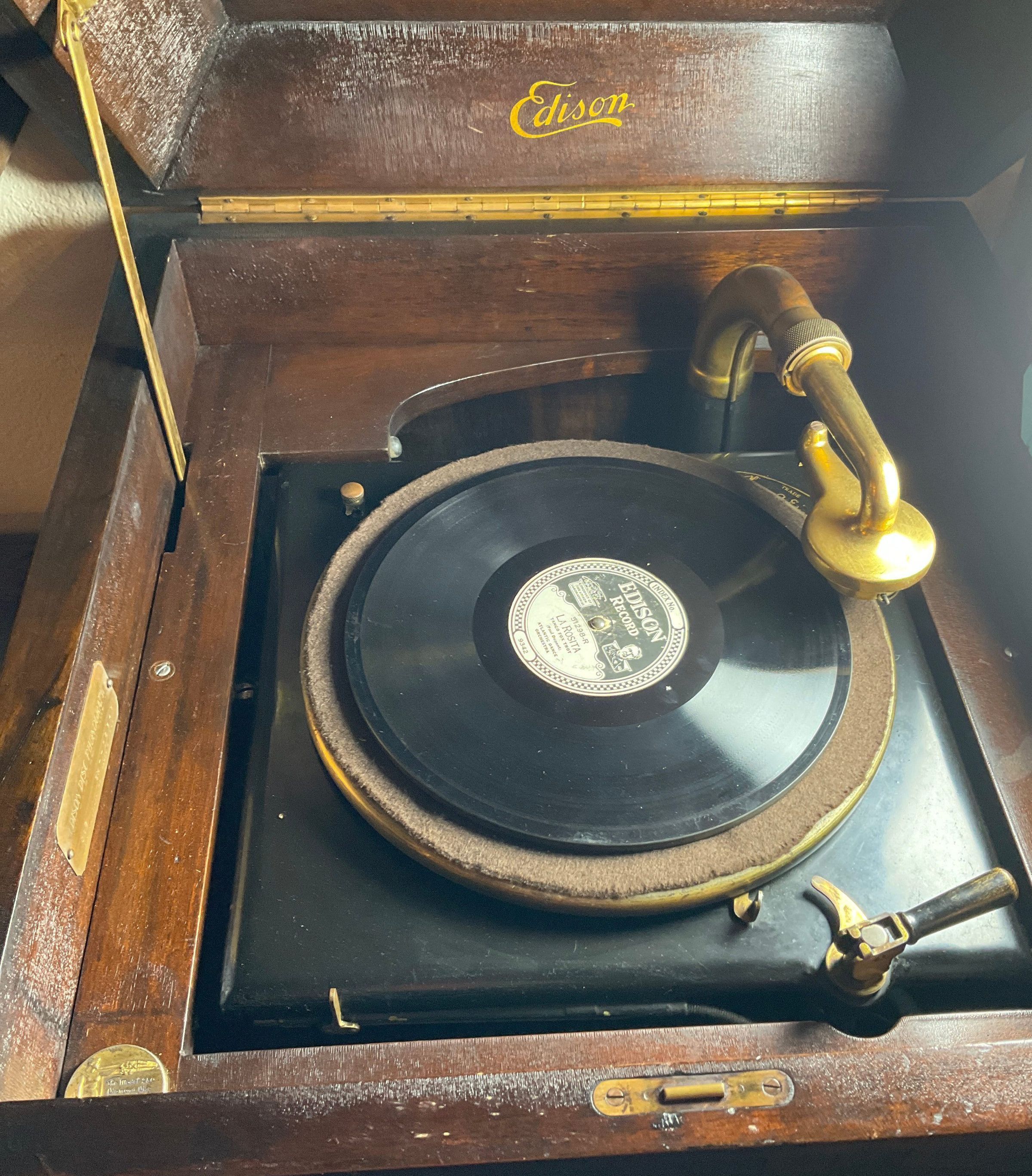 Gramofon Edison model 250. Amb 7 discs gruixuts.Location