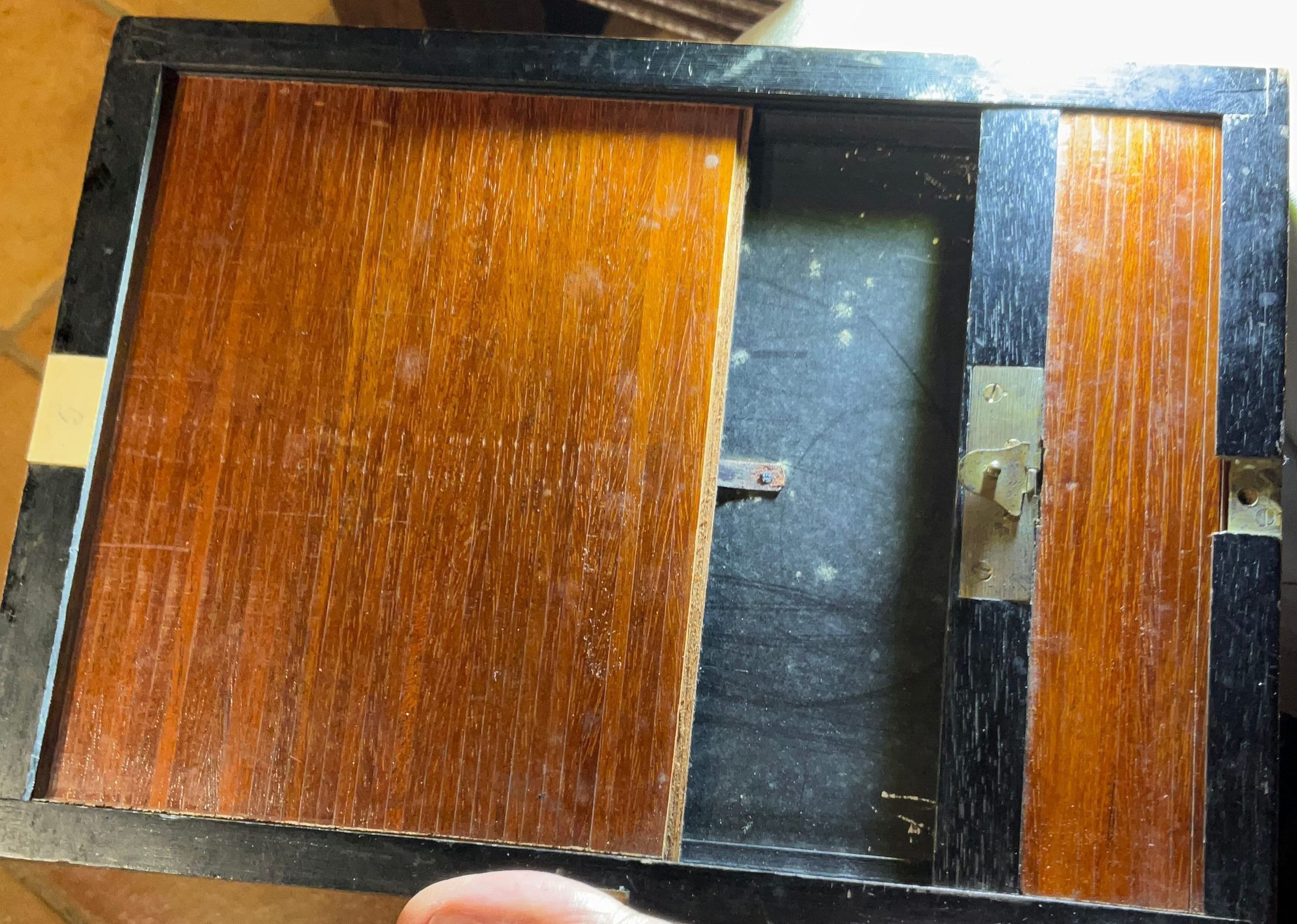 Vidre blau de la finestreta trovat en una caixa i posat , ja que encaixa i tenia un carto en lloc del vidreCreated By