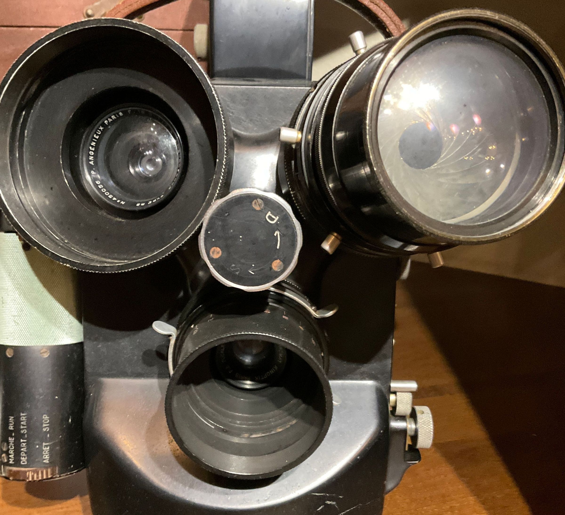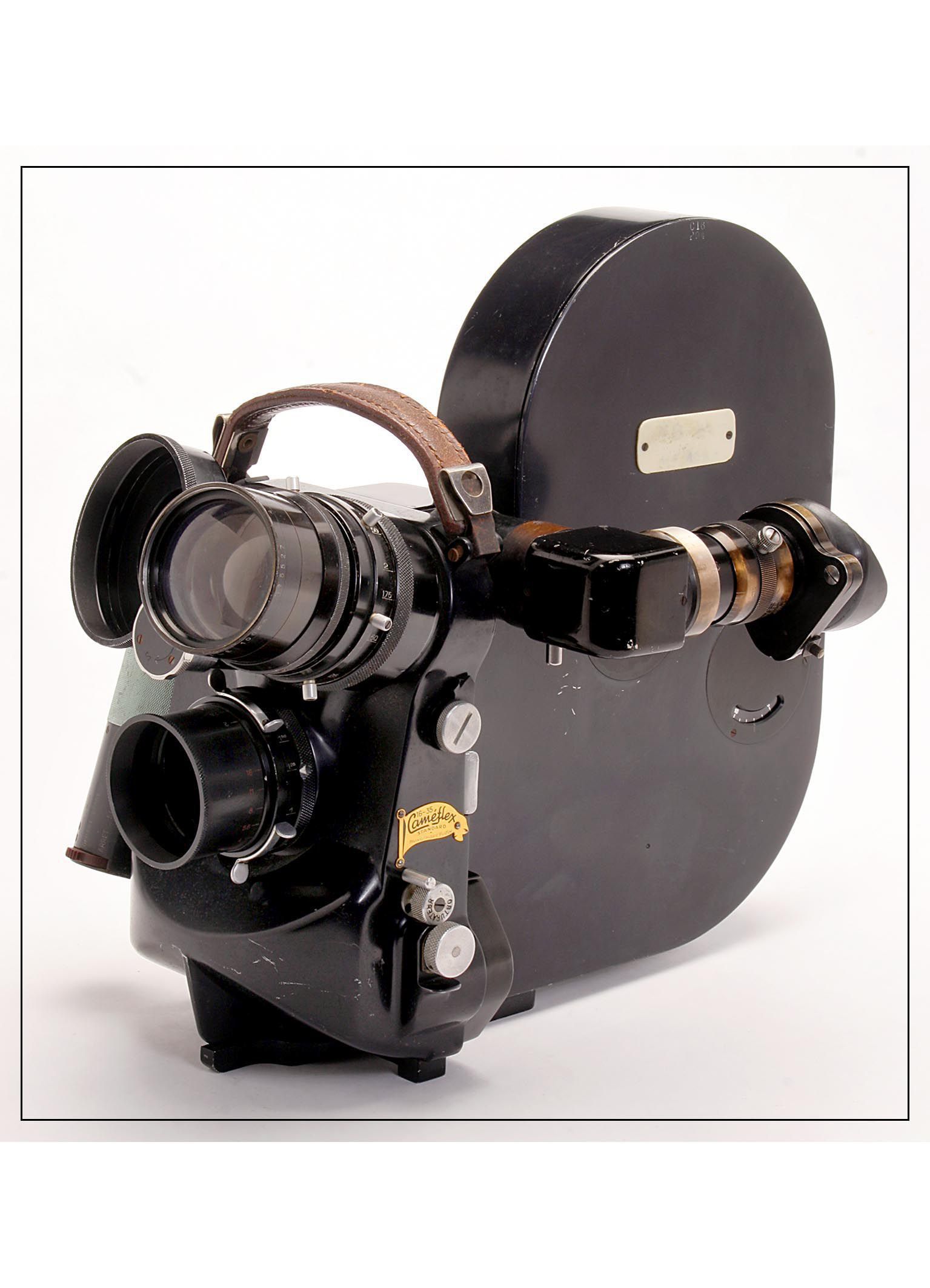 Camera de cinema amb 3 objectius. Cameflex
