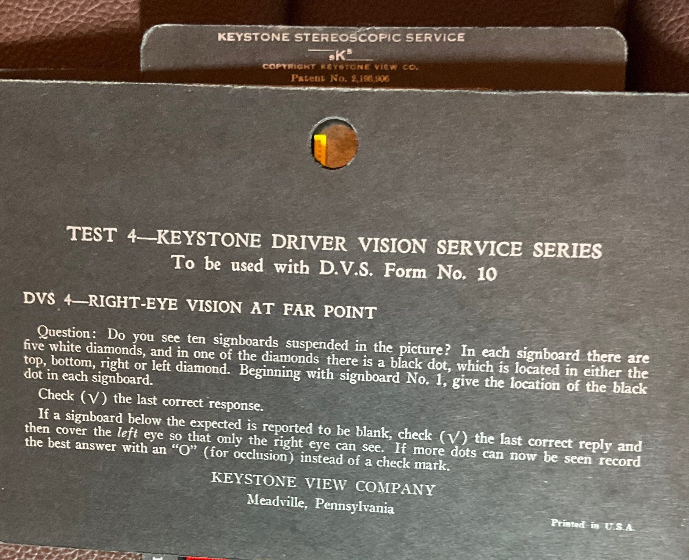 Maquina revisio optica per estereoscopia. Inclou 7 lamines de testCreated By