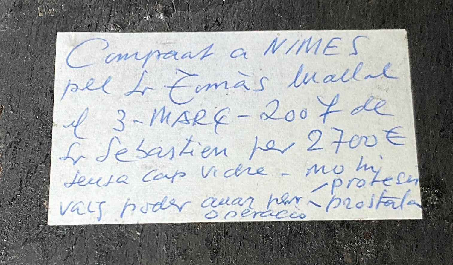 Cal encolar una cantonada de fusta. A mes a sota hi ha pols de corcsCreated By