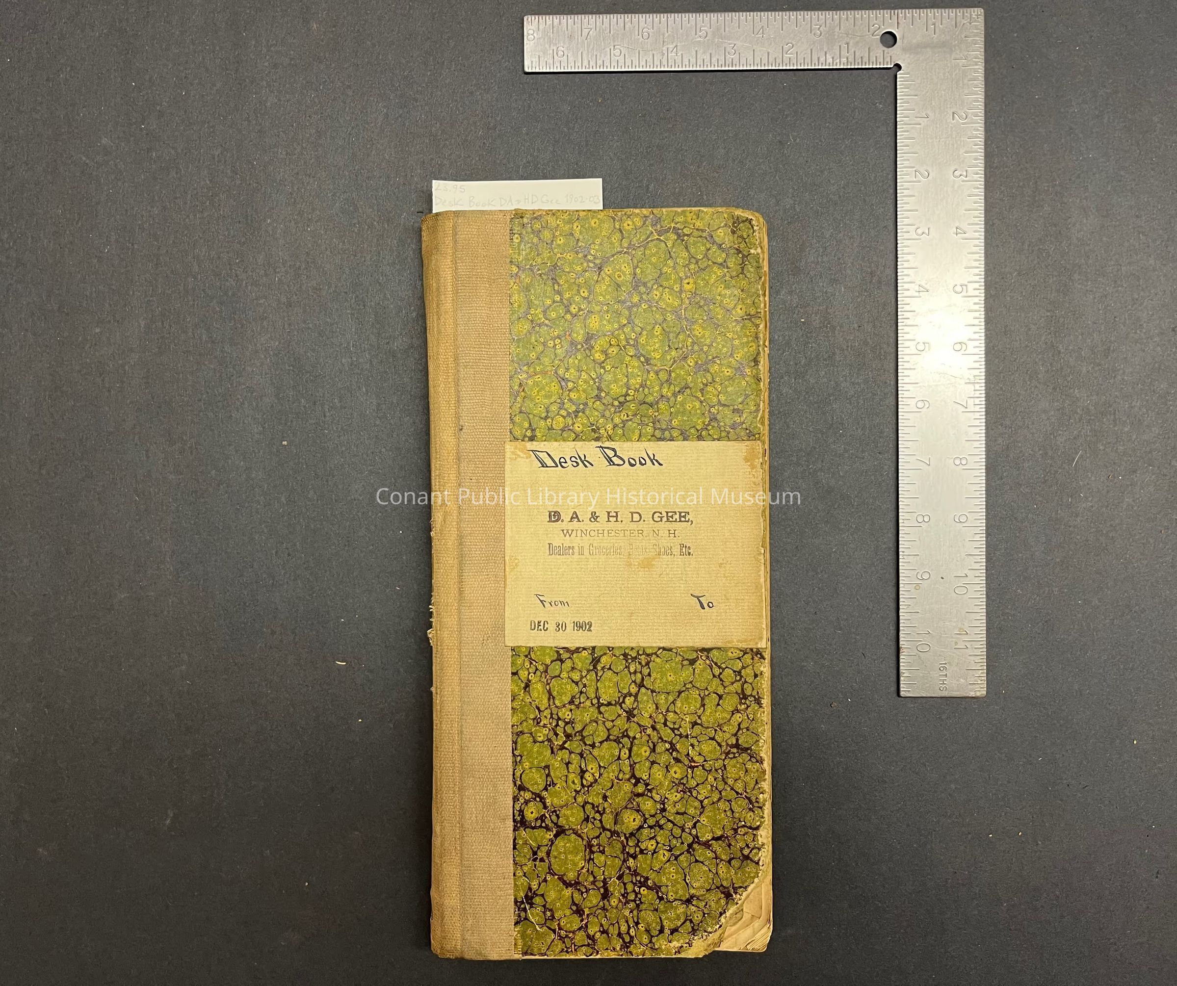 Desk Book D.A. & H.D. Gee, Winchester, N.H. Dealers in Groceries, Boots, Shoes, Etc. From Dec 30 1902-1903Entry/Object ID