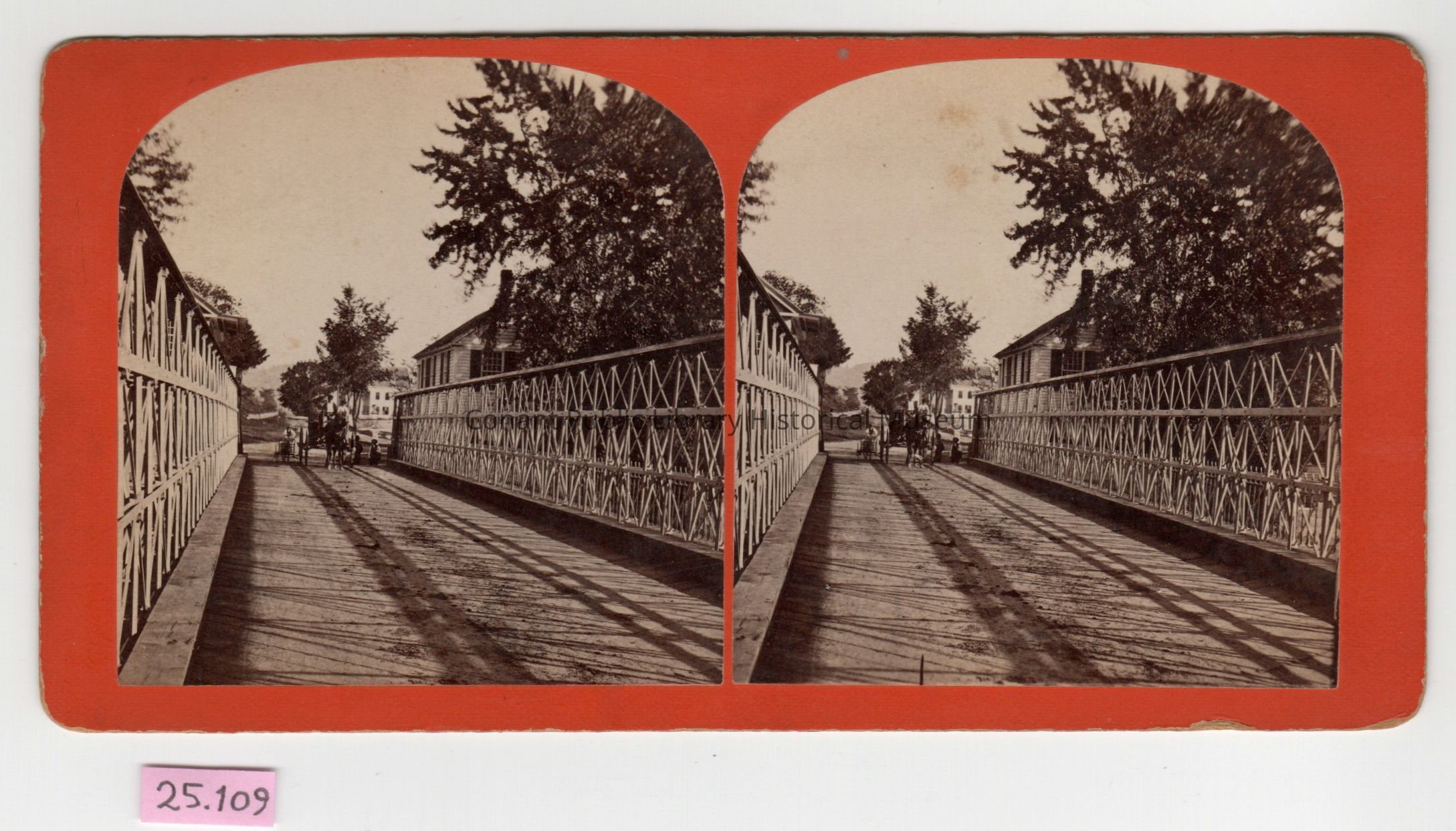View over bridge, with horse drawn wagon at far endSubject Place