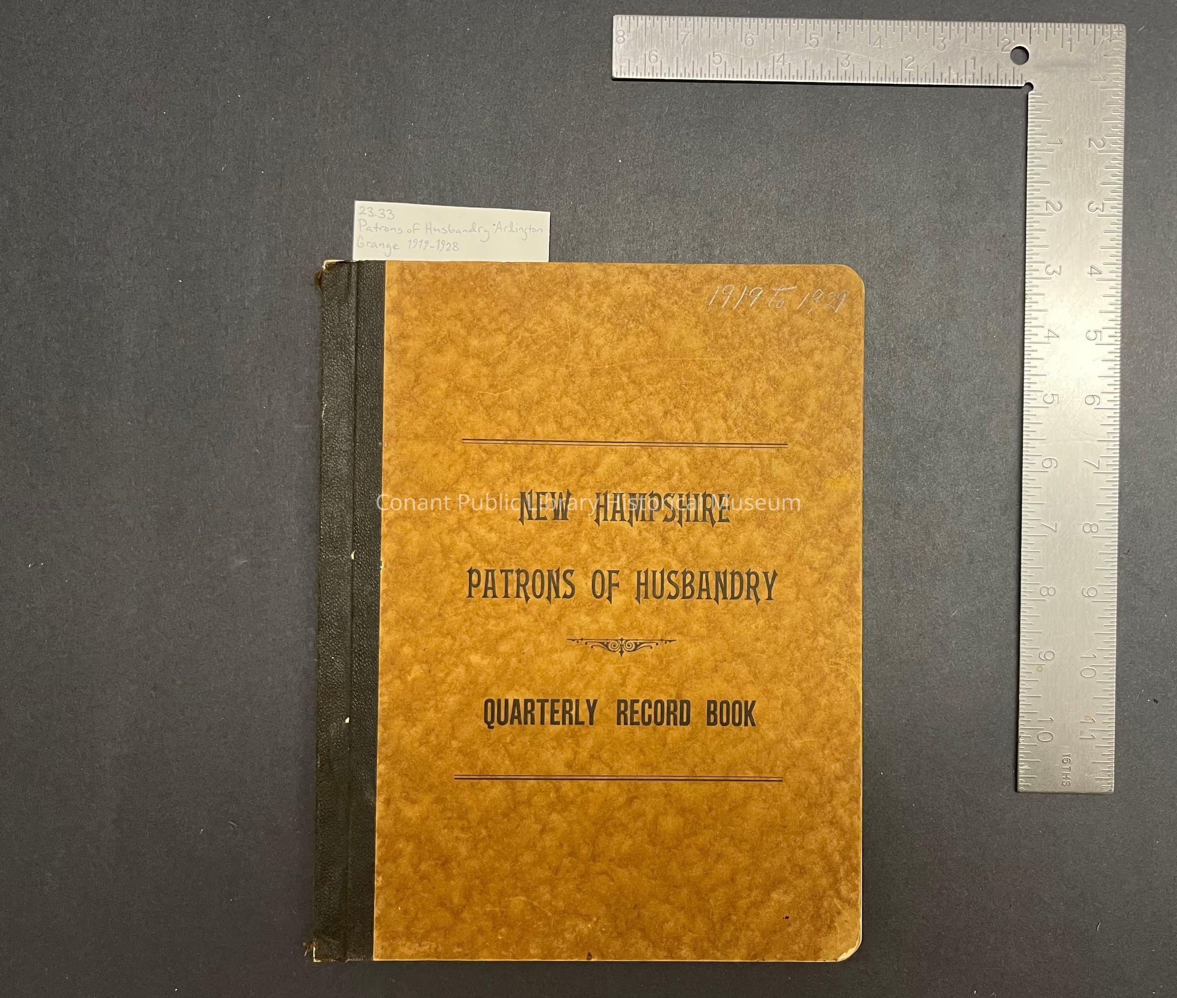 Patrons of Husbandry Record Book of Secretary's Quarterly Reports from Arlington Grange #139 to Secretary New Hampshire State Grange 1919-1928Entry/Object ID