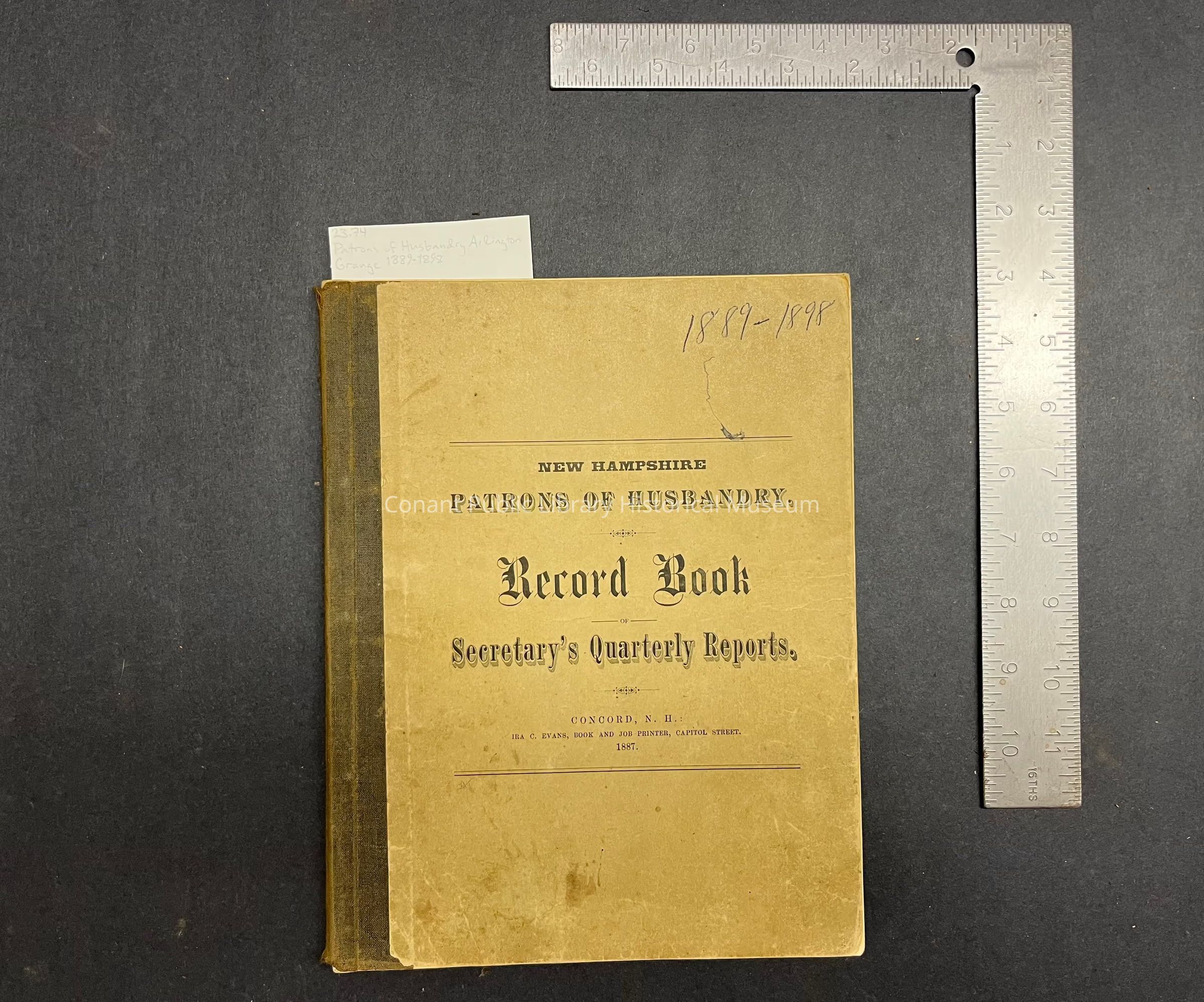 Patrons of Husbandry. Record Book of Secretary's Quarterly Reports, from Arlington Grange No. 139 to Secretary New Hampshire State Grange. 1889-1898Entry/Object ID
