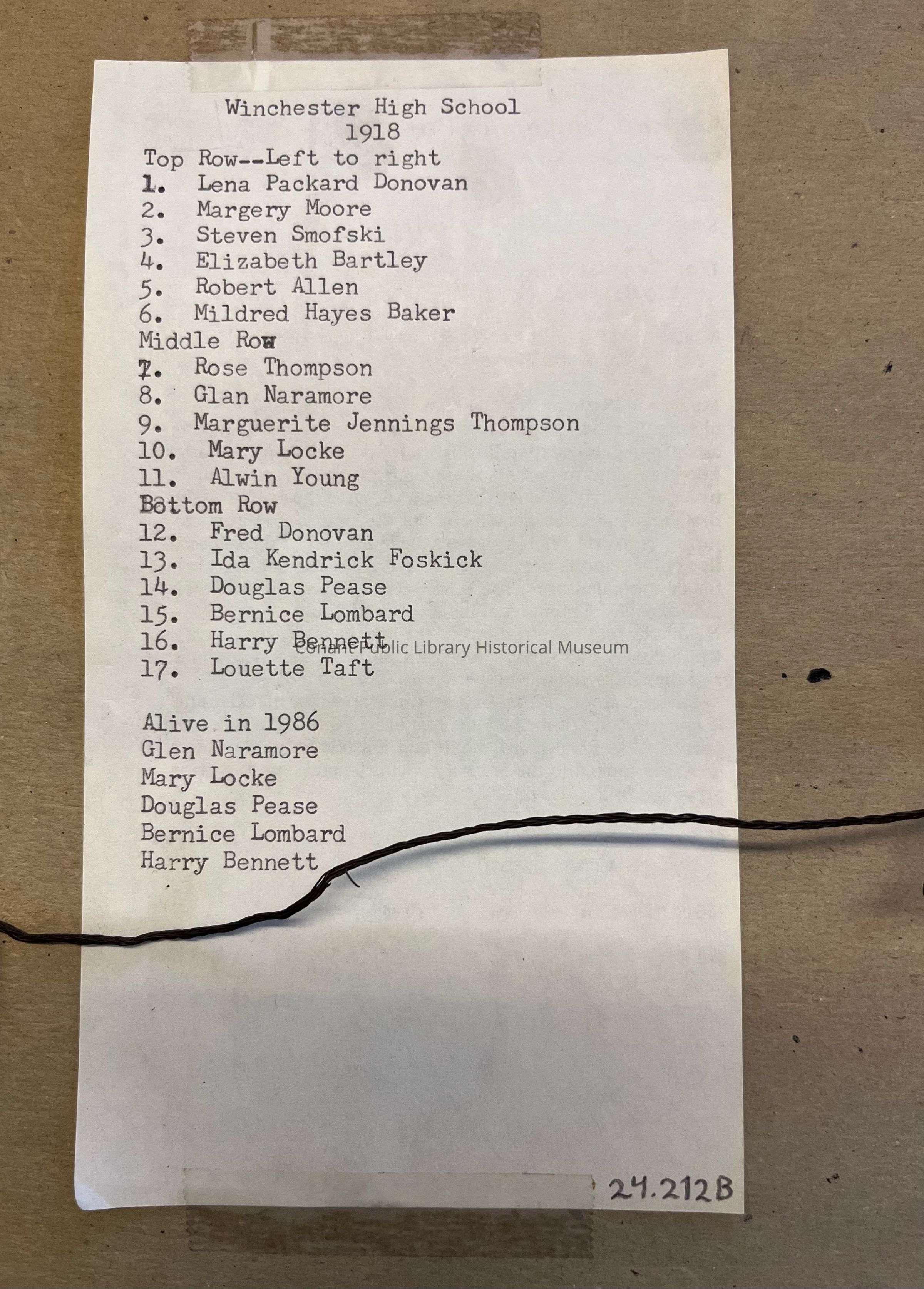 Lena M. Packard Donovan, Marjory I. Moore Ferrin, Steven Smofski, Elizabeth E. Bartley, Robert E. Allen, Mildred E. Hayes Baker, Rose Thompson, Glenn Corliss Naromore, Marguerite Ellis Jennings Thompson, Mary Locke, Alwin Eugene Young, Frederick David Donovan, Ida May Kendrick Fosdick, Douglas Sisson Pease, Bernice Lombard, Harry James Bennett, Frances Louette Taft McGonagle Conlon Holt