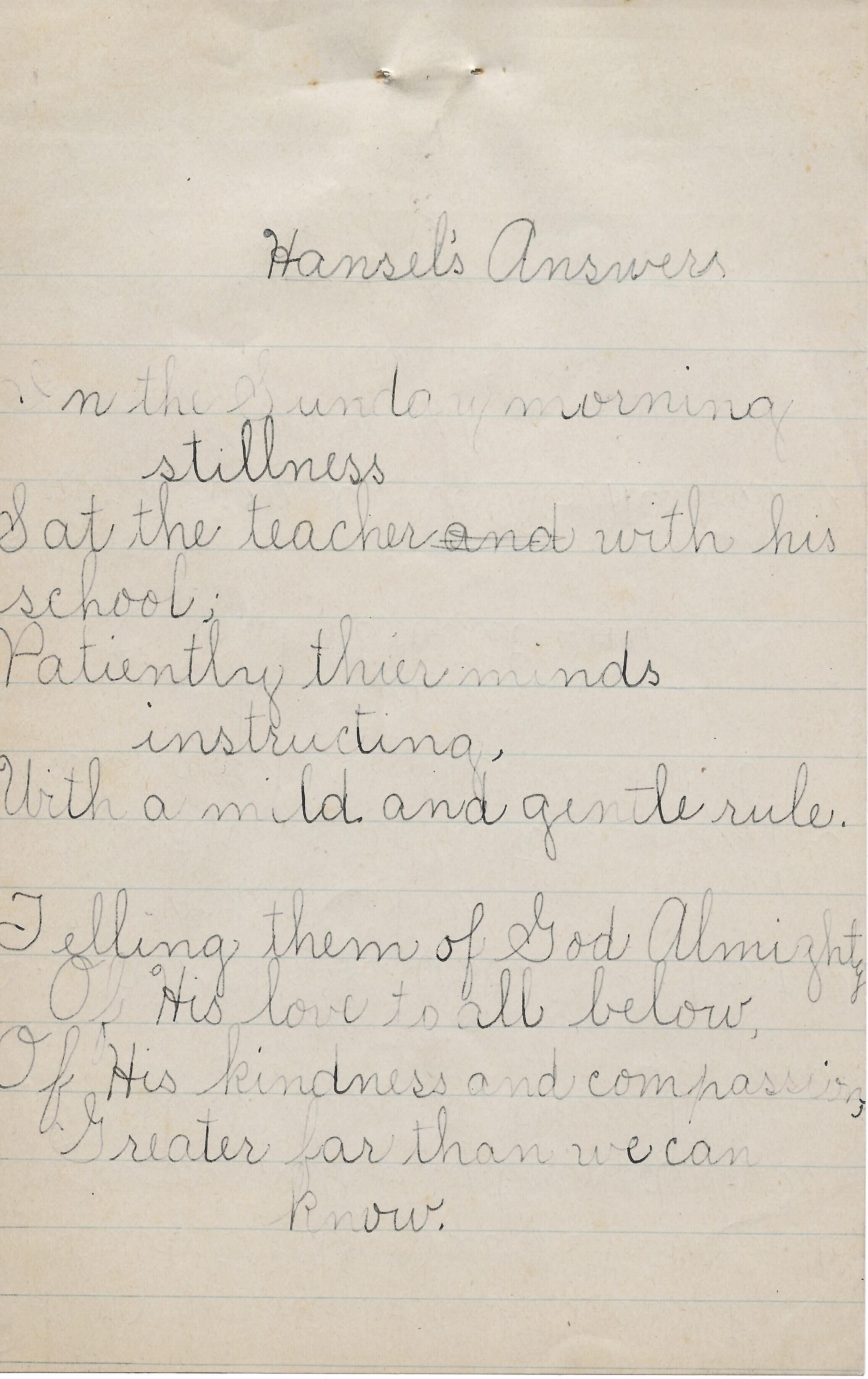 Hansel's Answers - Handwritten PoemEntry/Object ID