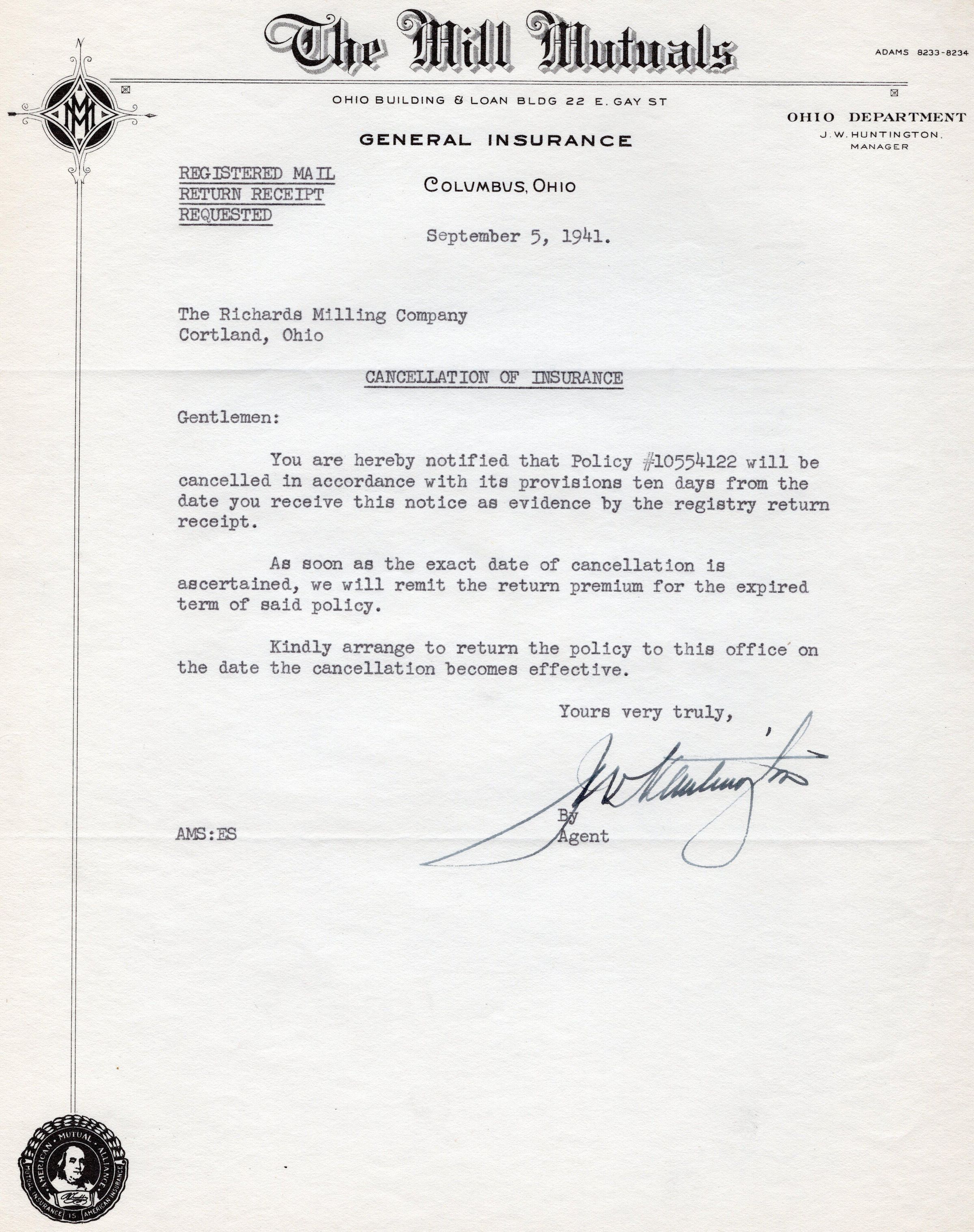Cancellation of Insurance at Richards Milling Co.Entry/Object ID