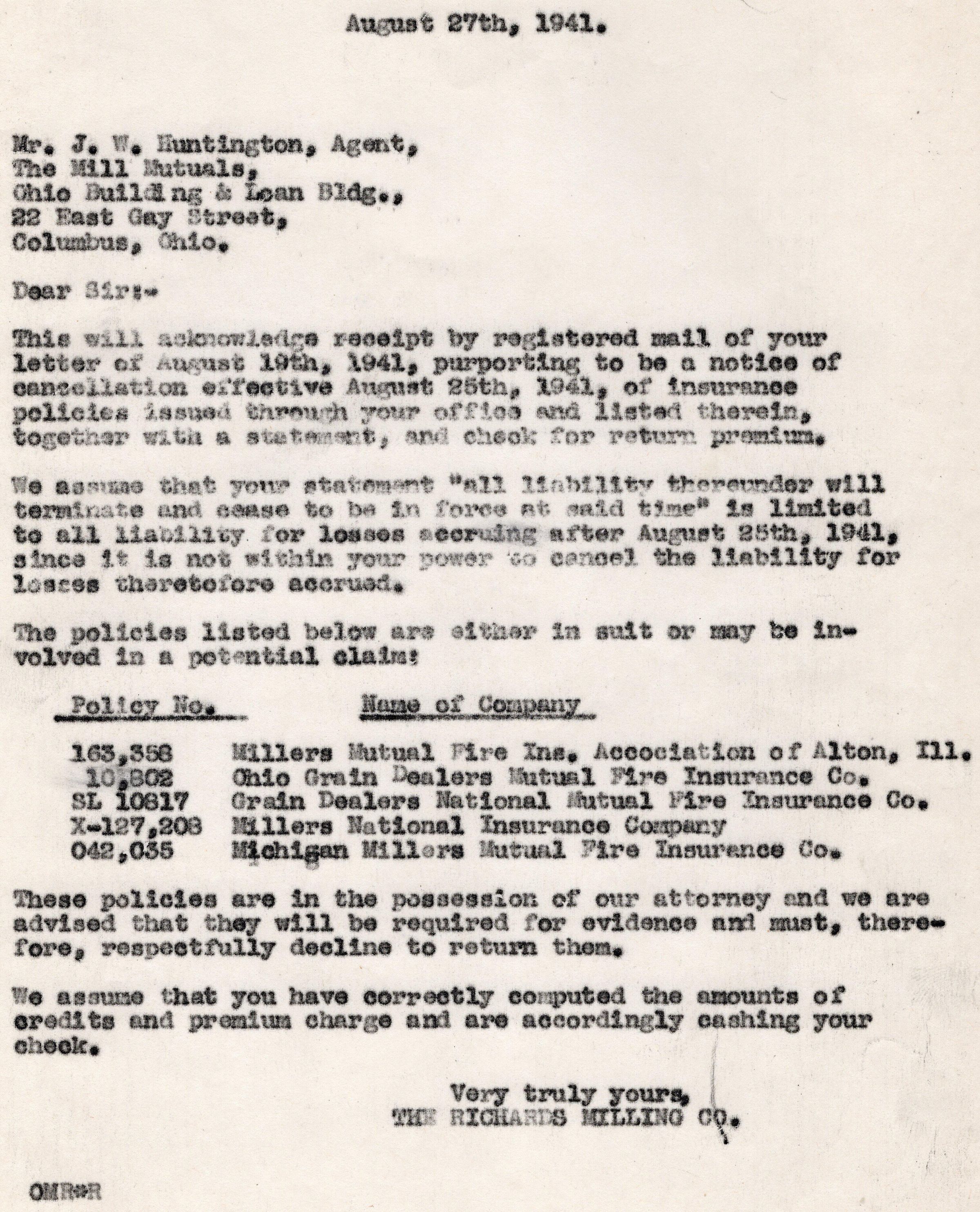 Richards Milling Company, The Mill Mutuals, Millers Mutual Fire Ins., Ohio Grain Dealers Mutual Fire Insuranace Company, Grain Dealers National Mutual Fire Insurance Co., Millers National Insurance Company, Michigan Millers Mutual Fire Insurance Co.