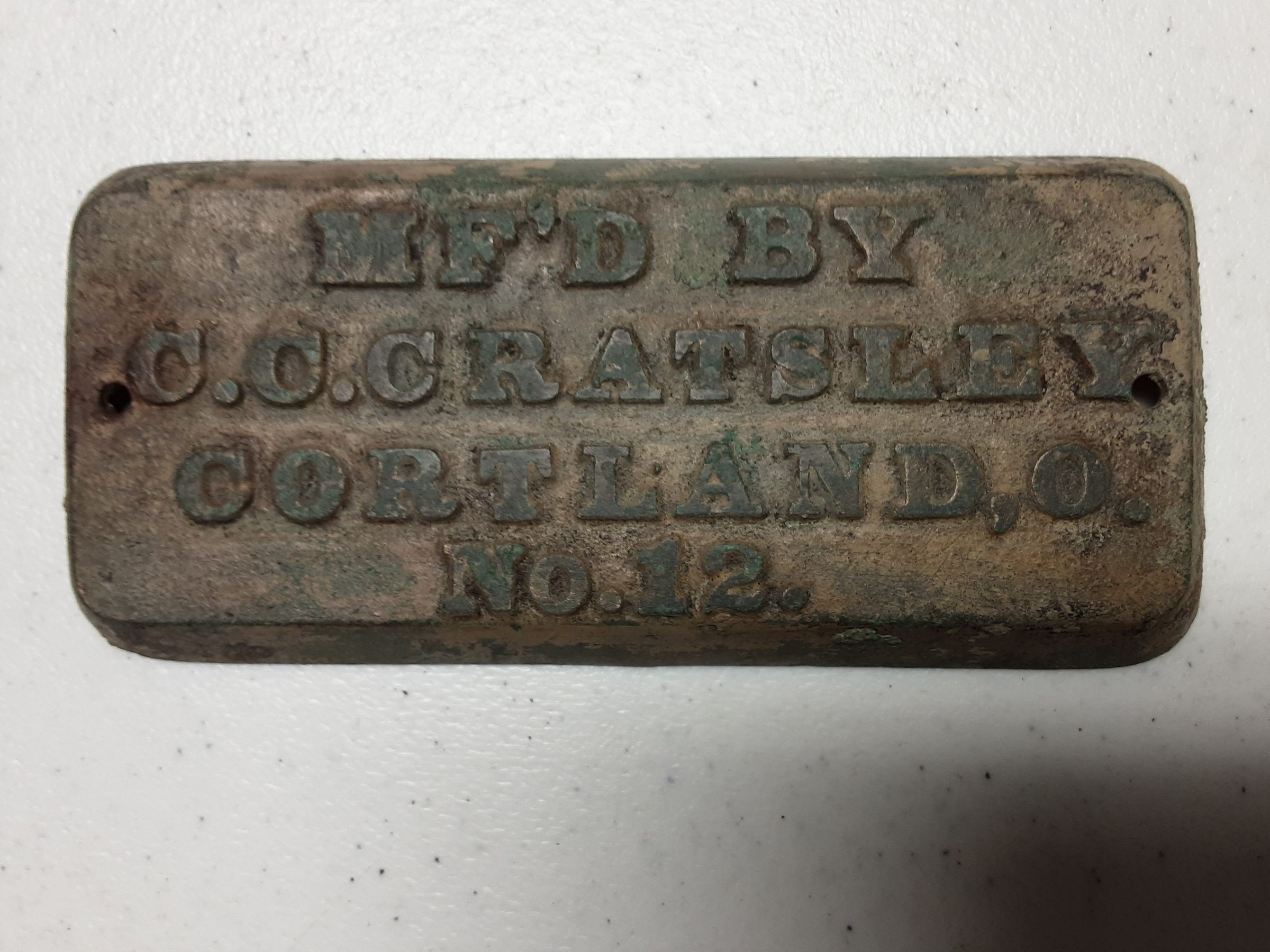 Brass Plaque C.C.CRATSLEY CORTLAND, OH No. 12Entry/Object ID
