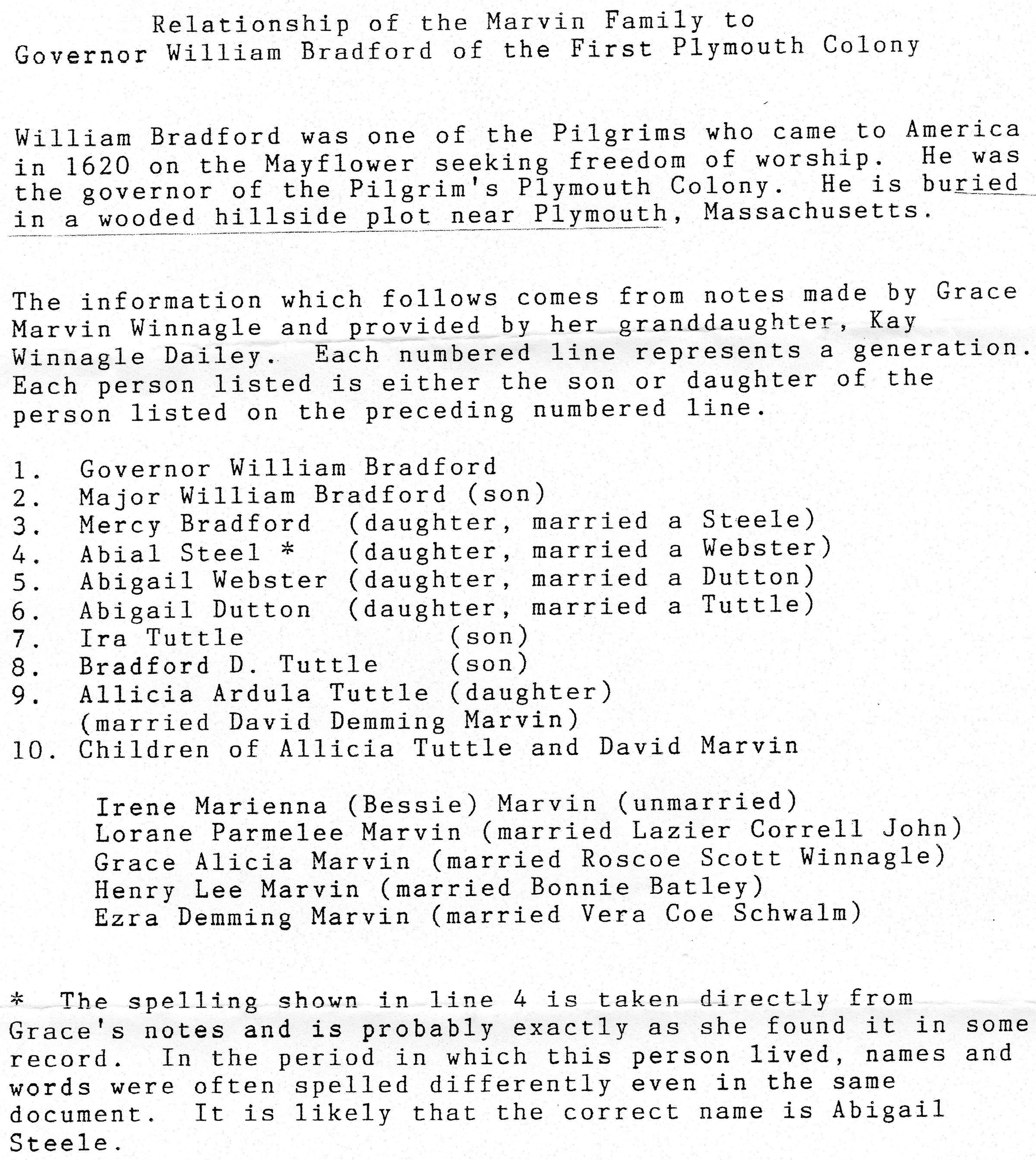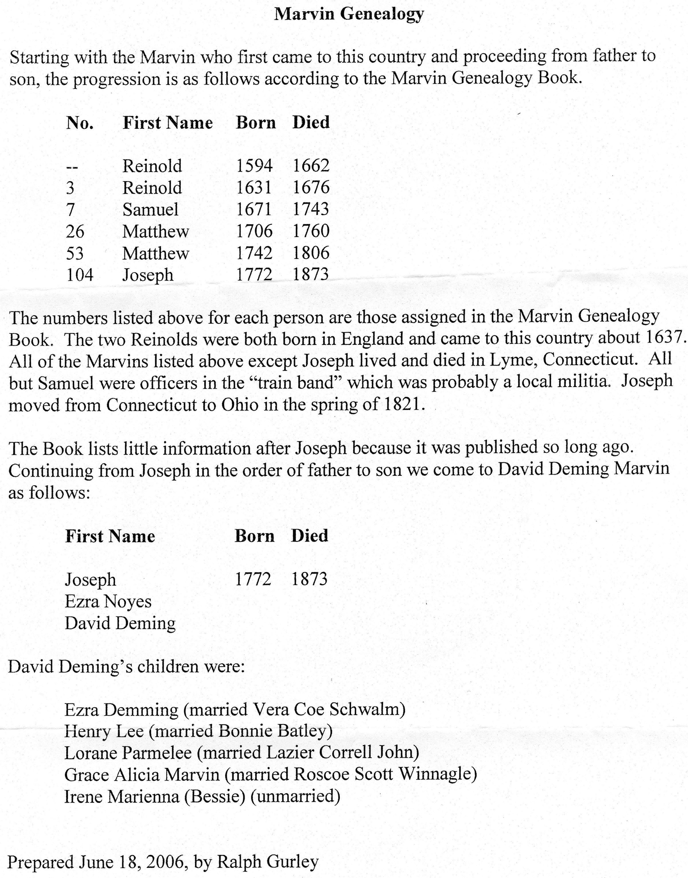 Notes typed from handwritten notes taken from the Marvin Genealogy book