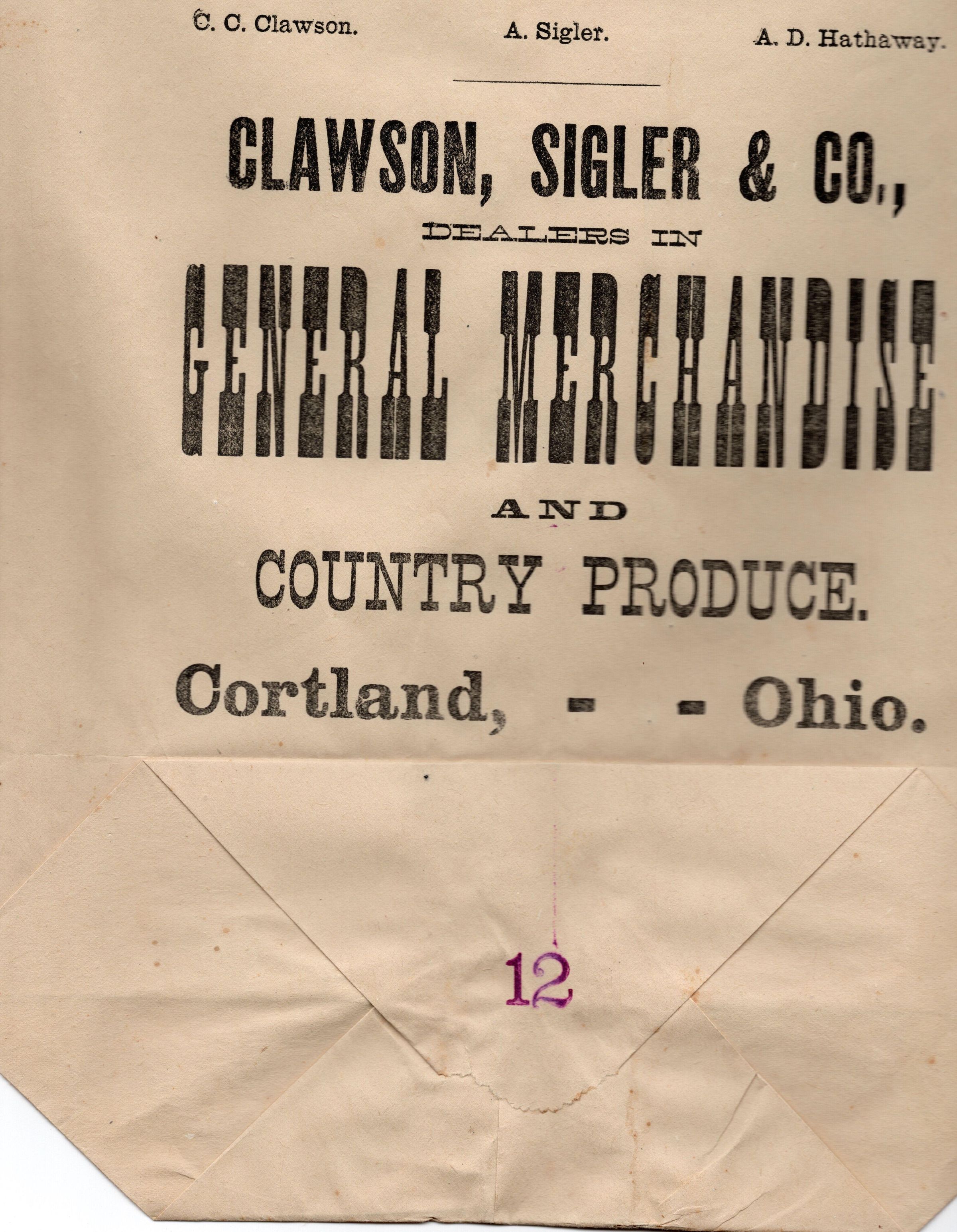 Clawson, Sigler & Co. Cortland, Ohio General Merchandise and Country Produce Merchandise Bag (7 Bags)Collection