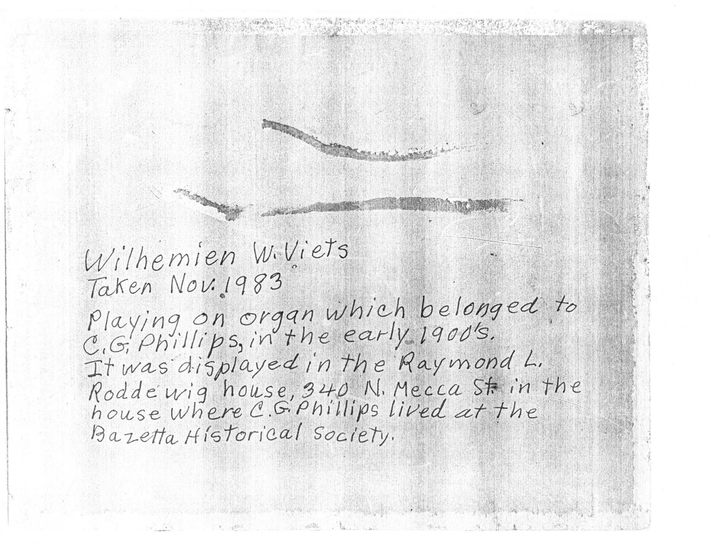 Wilhemien Viets playing the C. G. Philips Organ Taken Nov. 1983Photograph Details