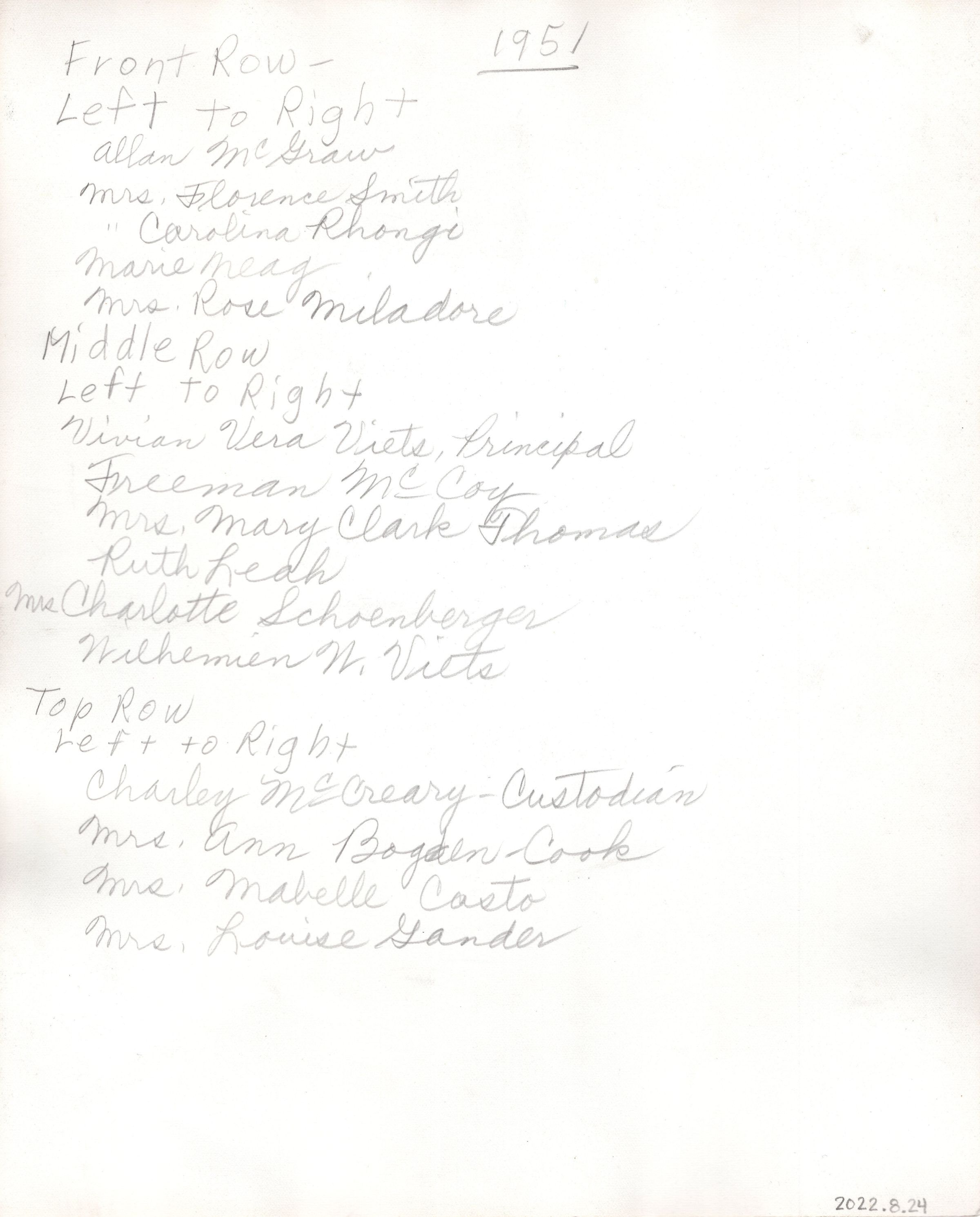 McGraw, Allan, Smith, Florence, Rhongi, Caroline, Neag, Marie, Miladore, Rose, Viets, Vera, McCoy, Freeman, Thomas, Mary Clark, Leah, Ruth, Schoenberger, Charlotte, Viets, Wilhemien, McCreary, Charley, Bogaen, Ann, Castro, Mabelle, Gander, Louise