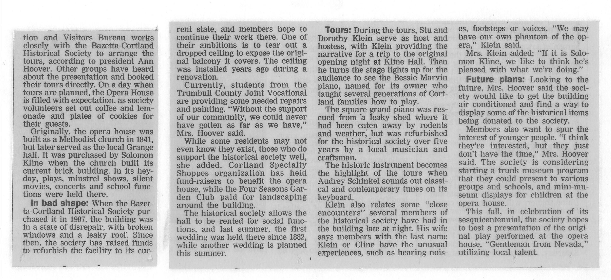 McLaughlin, Laura, Trumbull County Convention and Visitors Bureau, Hoover, Ann, Four Seasons Garden Club, Cortland Specislty Shops, Klein, Dorthy, Cortland Bazetta Historical Society, Marvin, Bessie, Kline, Solomon, Klein, Erwin, Trumbull County Joint Vocational School
